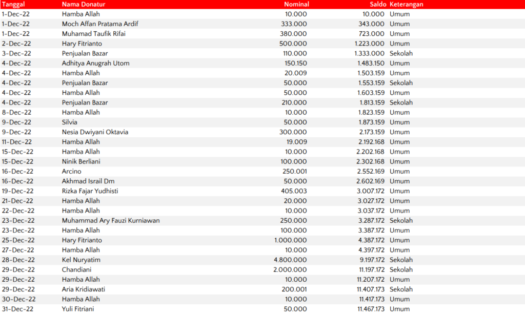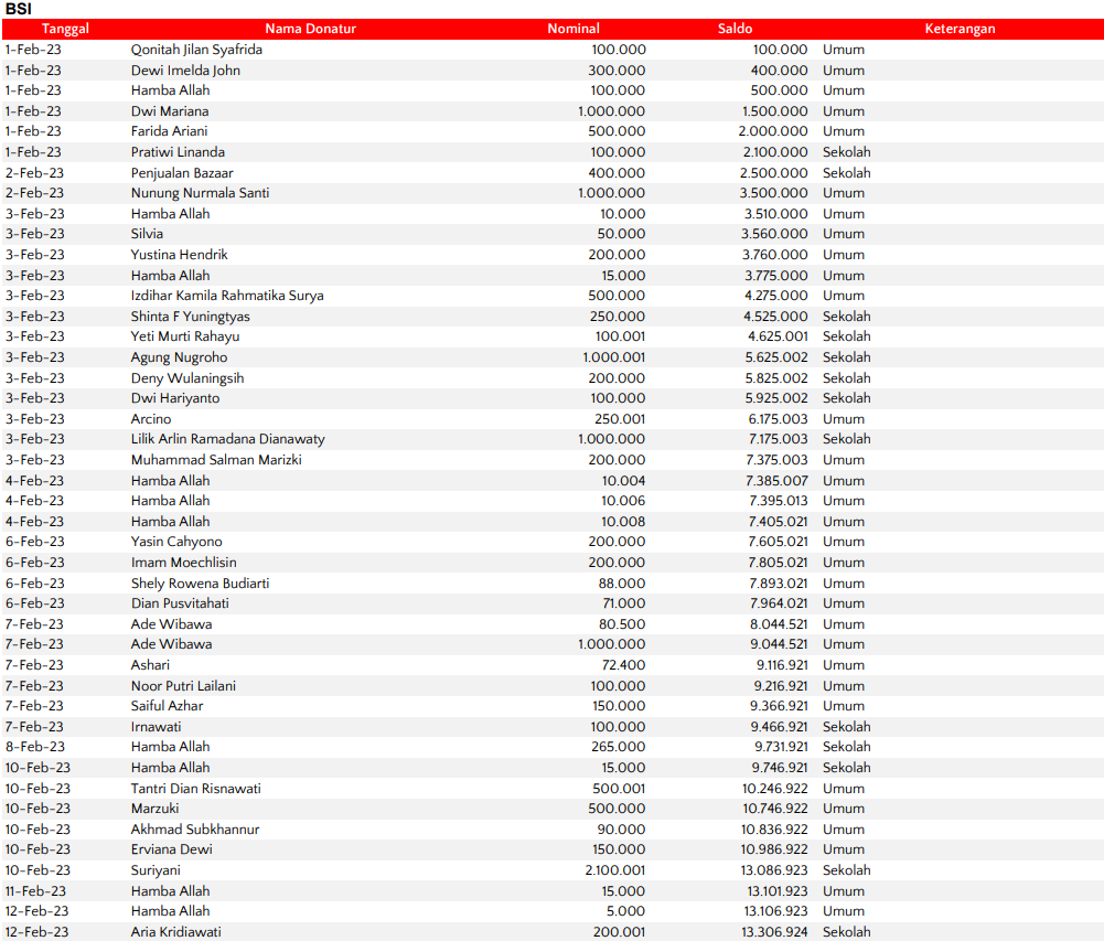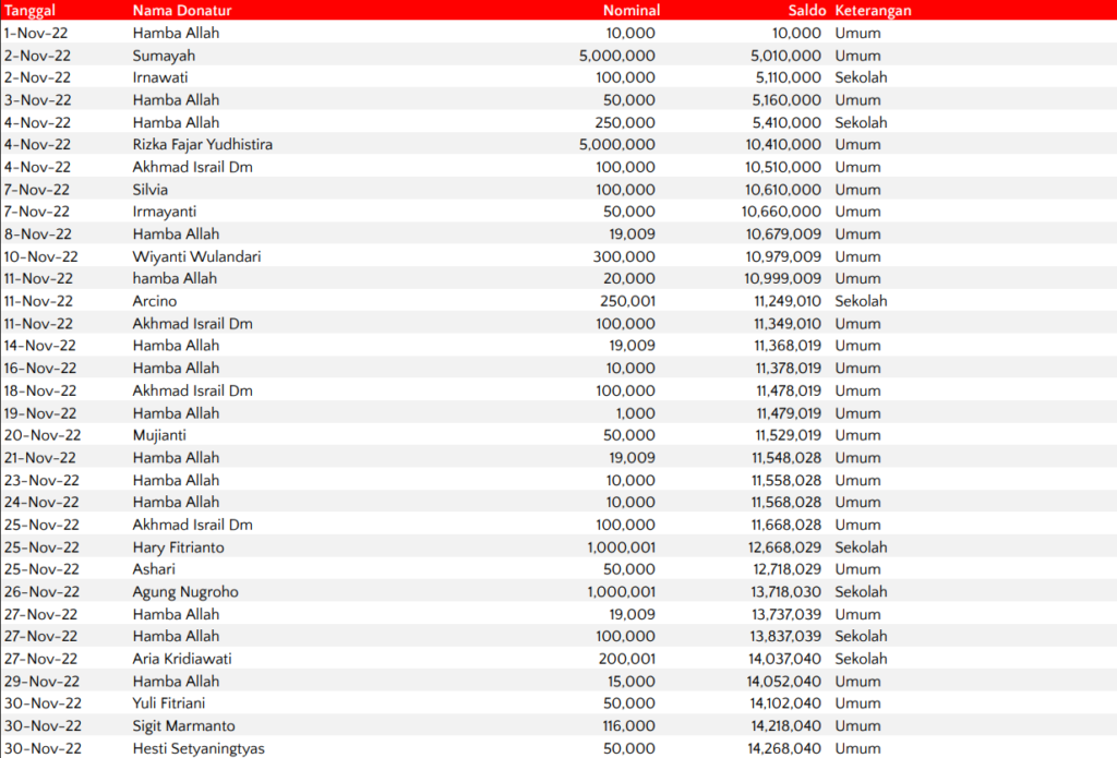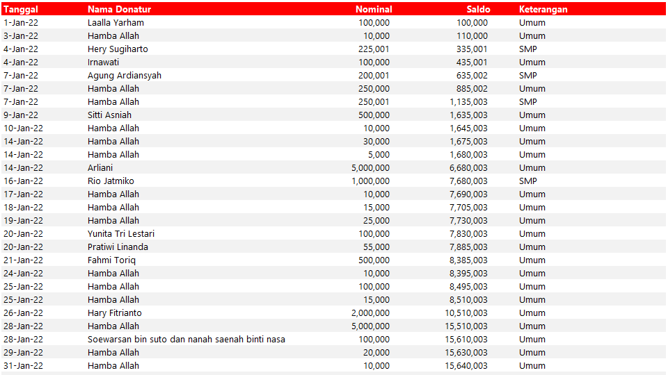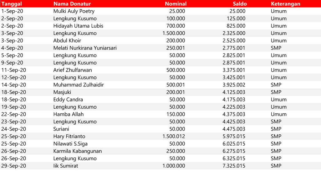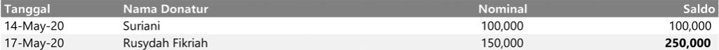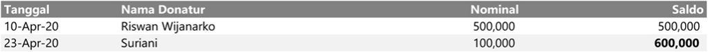 - Kami akan mengirimkan laporan donasi sekaligus reminder bulanan kepada donatur.