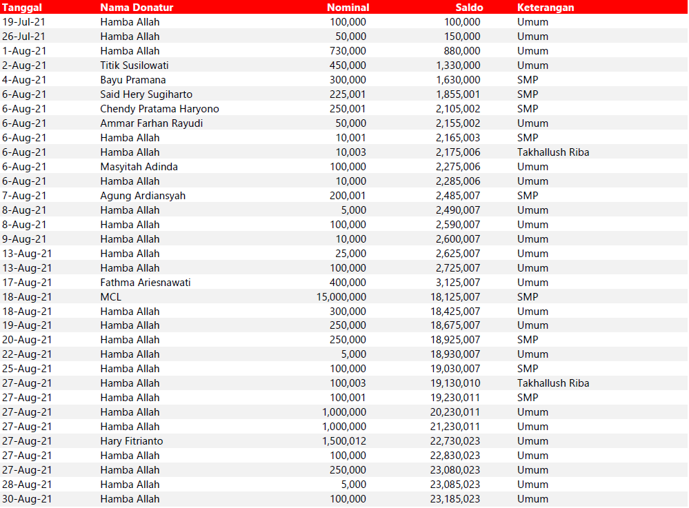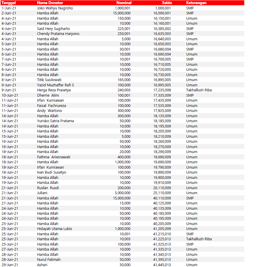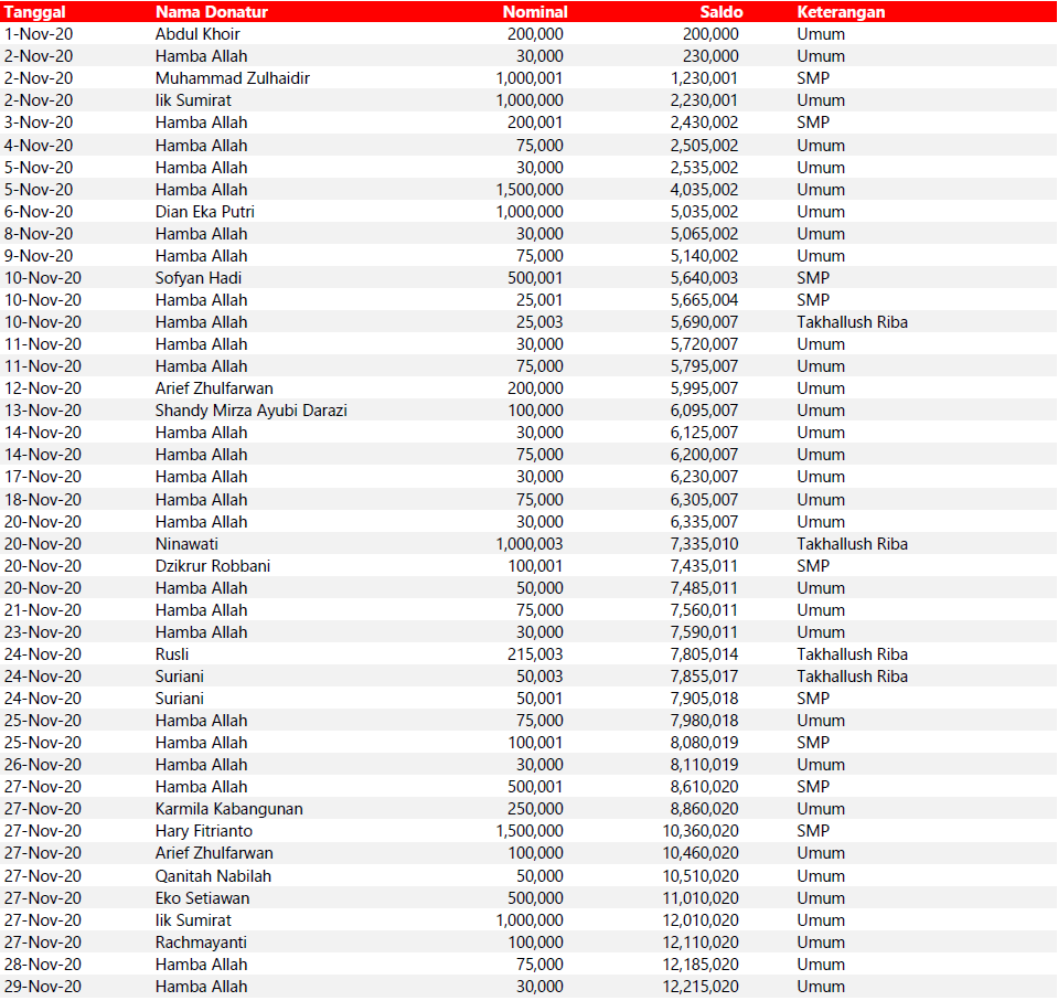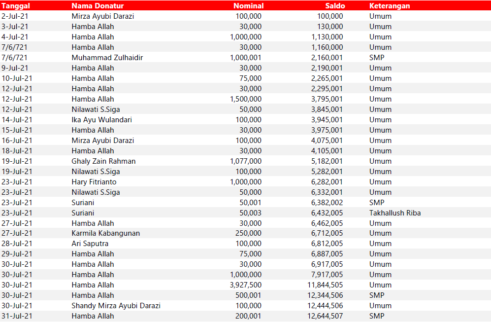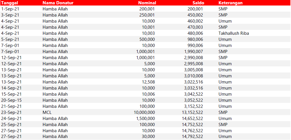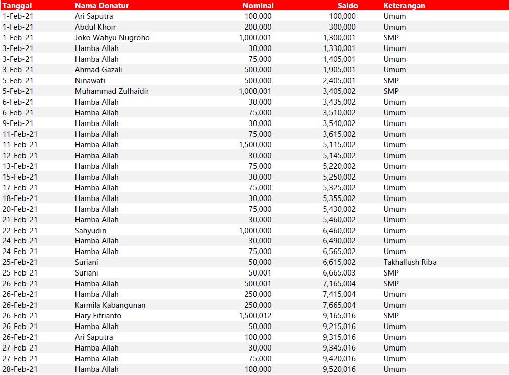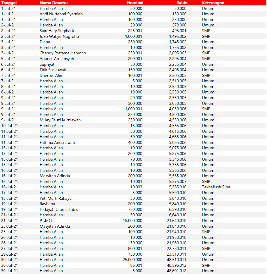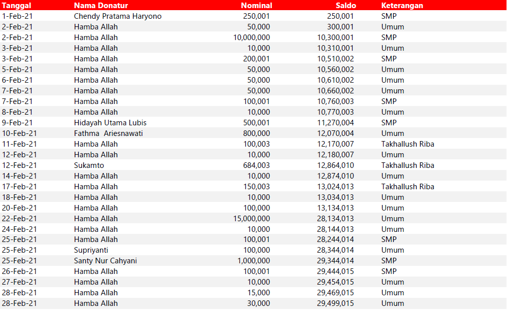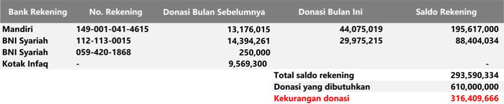 Semua dana yang masuk nantinya akan dibuatkan laporan yang akuntabel dan transparan secara berkala. Sehingga dapat dipertanggungjawabkan dihadapan ummat.