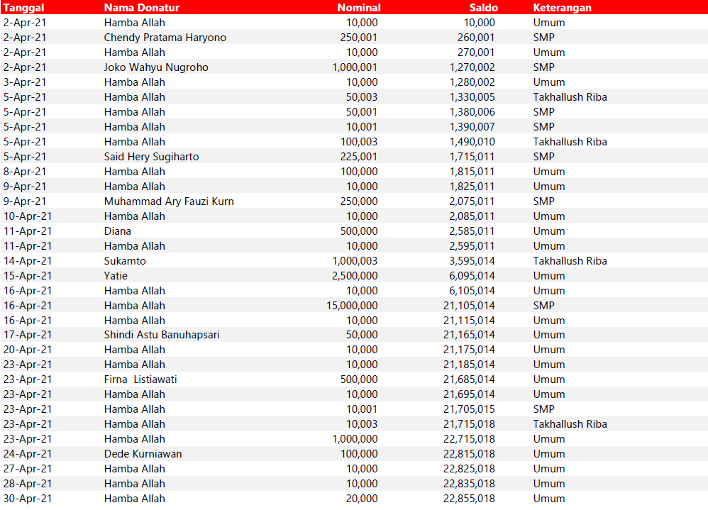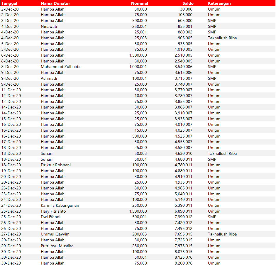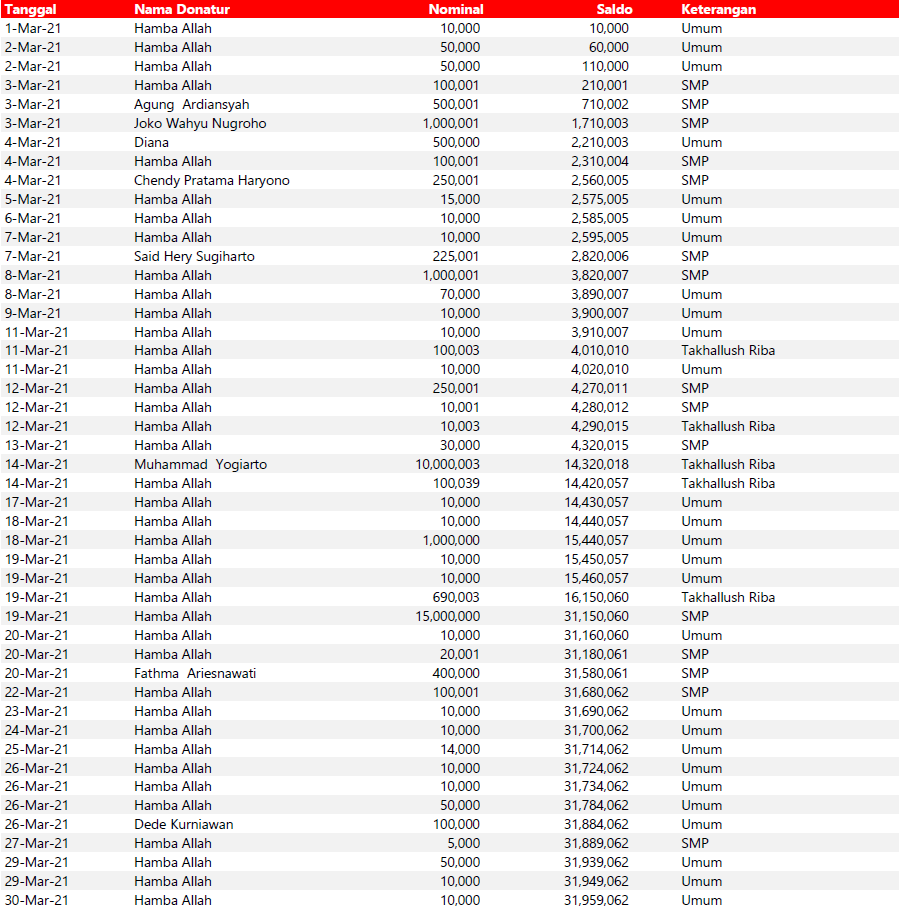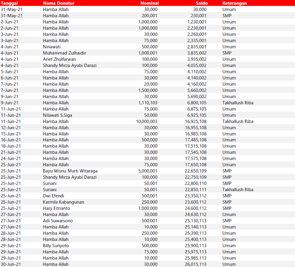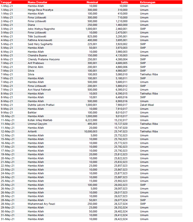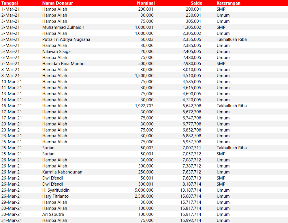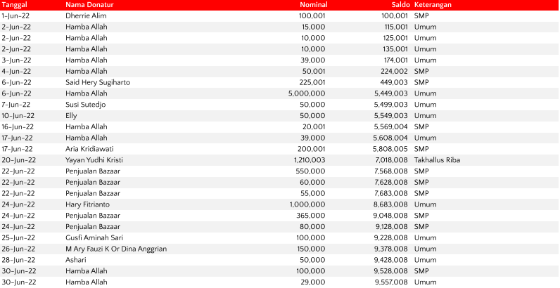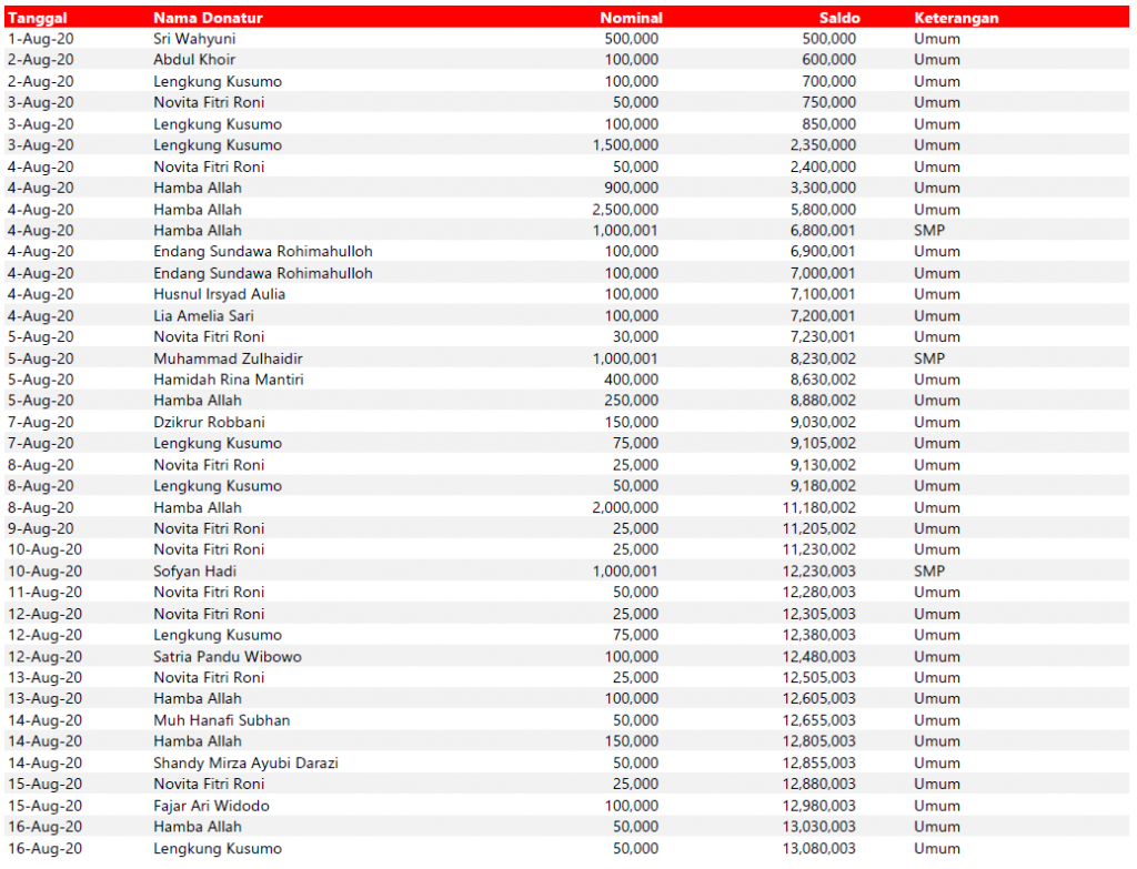 Semua dana yang masuk nantinya akan dibuatkan laporan yang akuntabel dan transparan secara berkala. Sehingga dapat dipertanggungjawabkan dihadapan ummat.