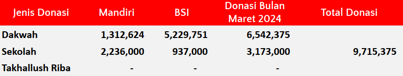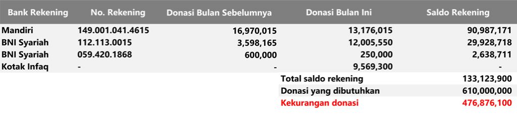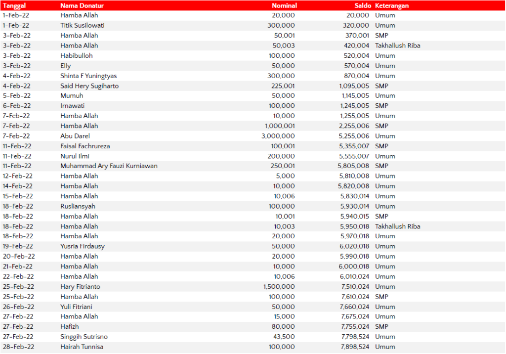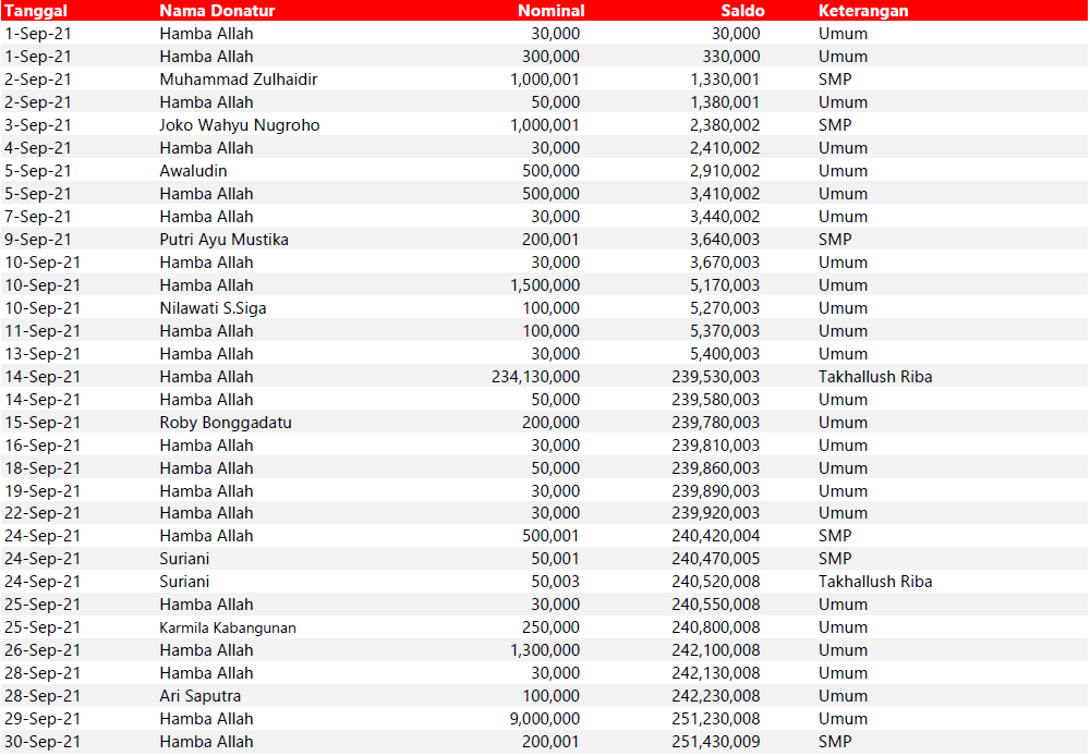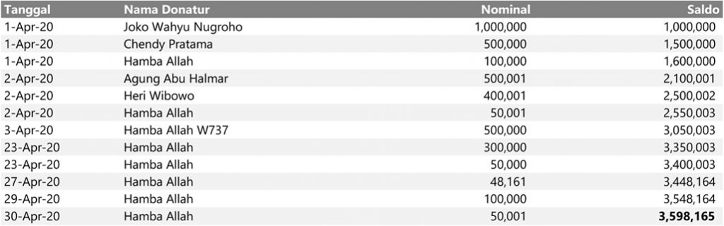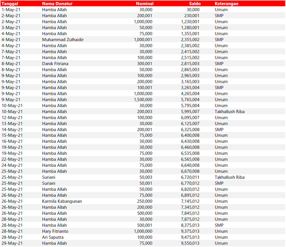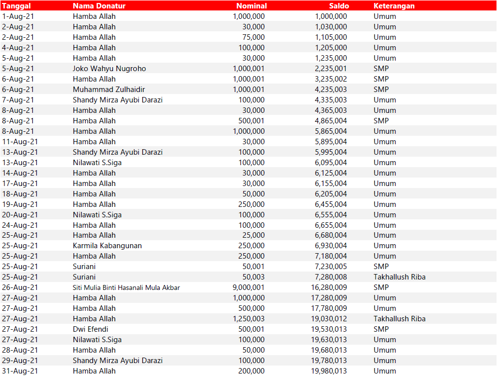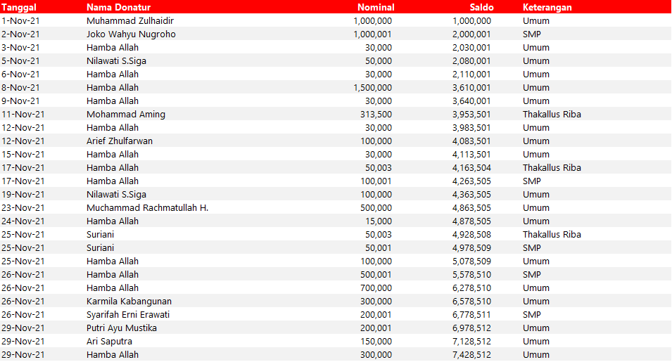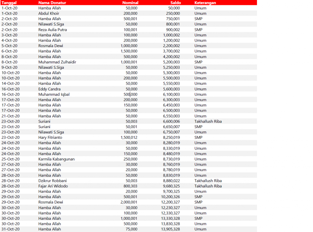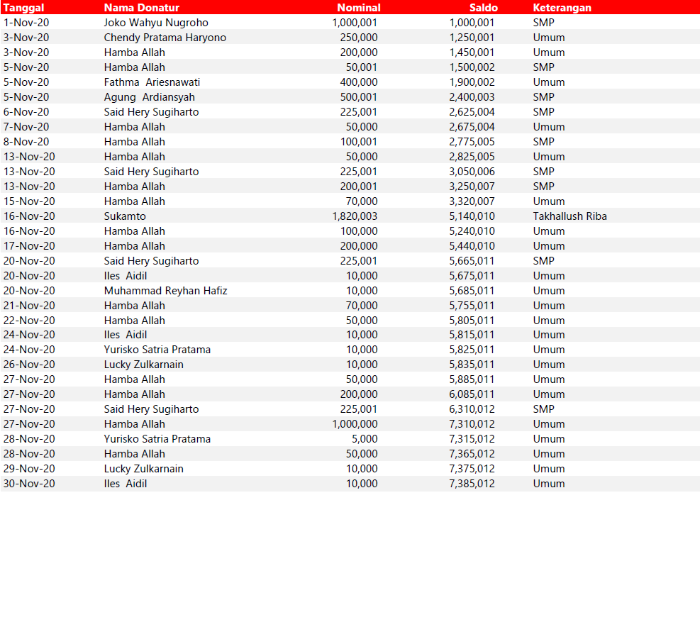 Semua dana yang masuk nantinya akan dibuatkan laporan yang akuntabel dan transparan secara berkala. Sehingga dapat dipertanggungjawabkan dihadapan ummat.