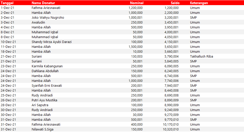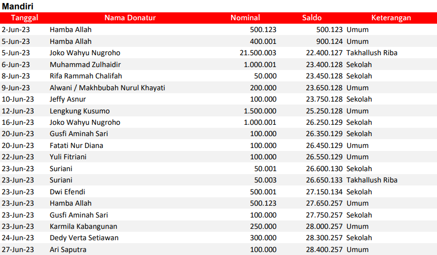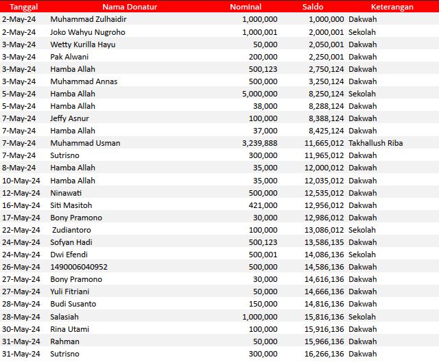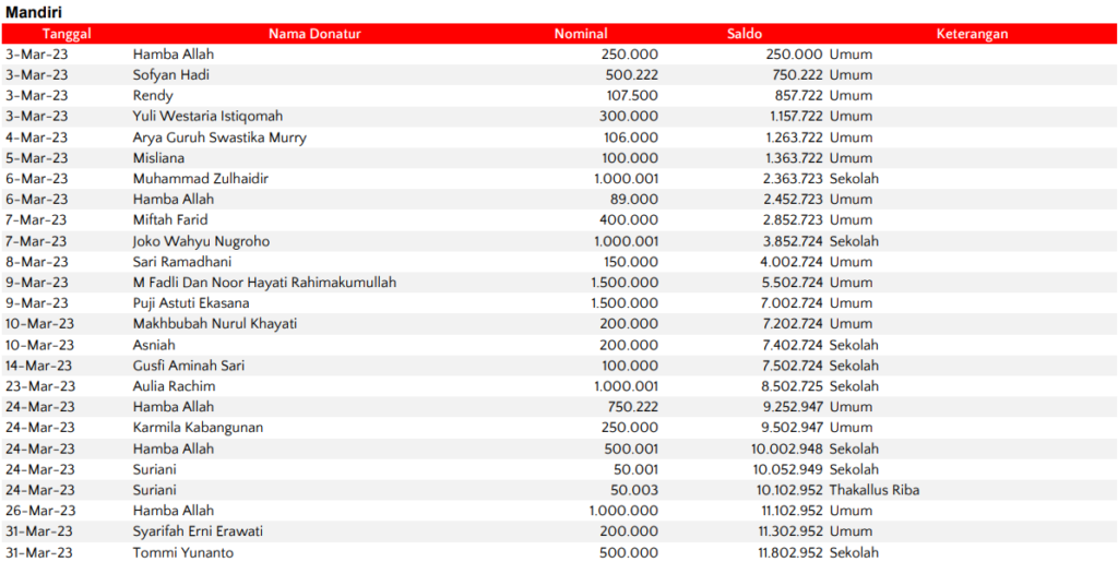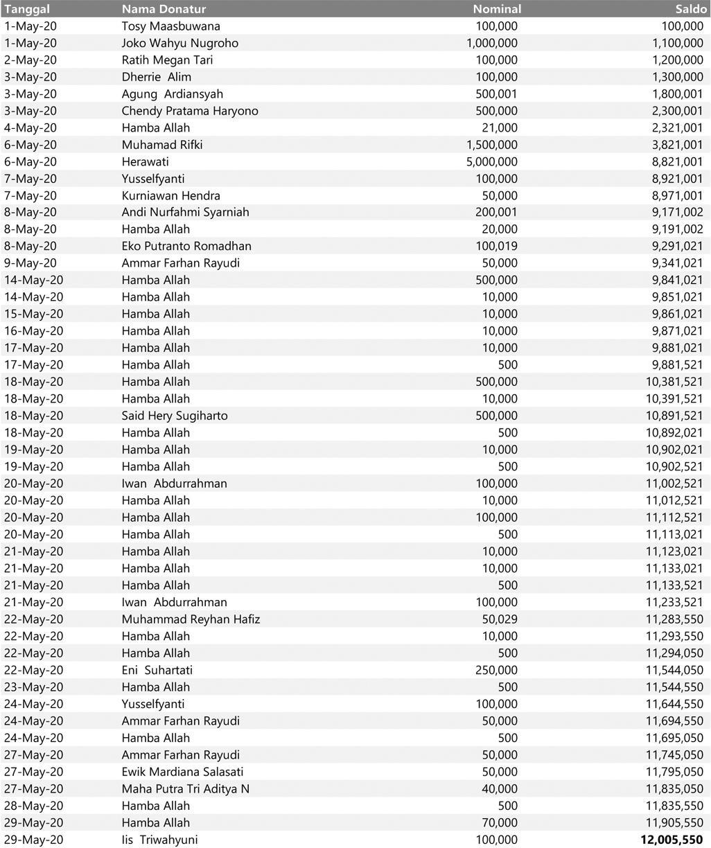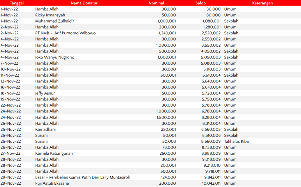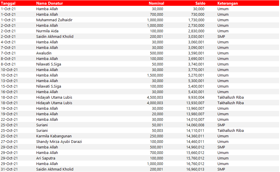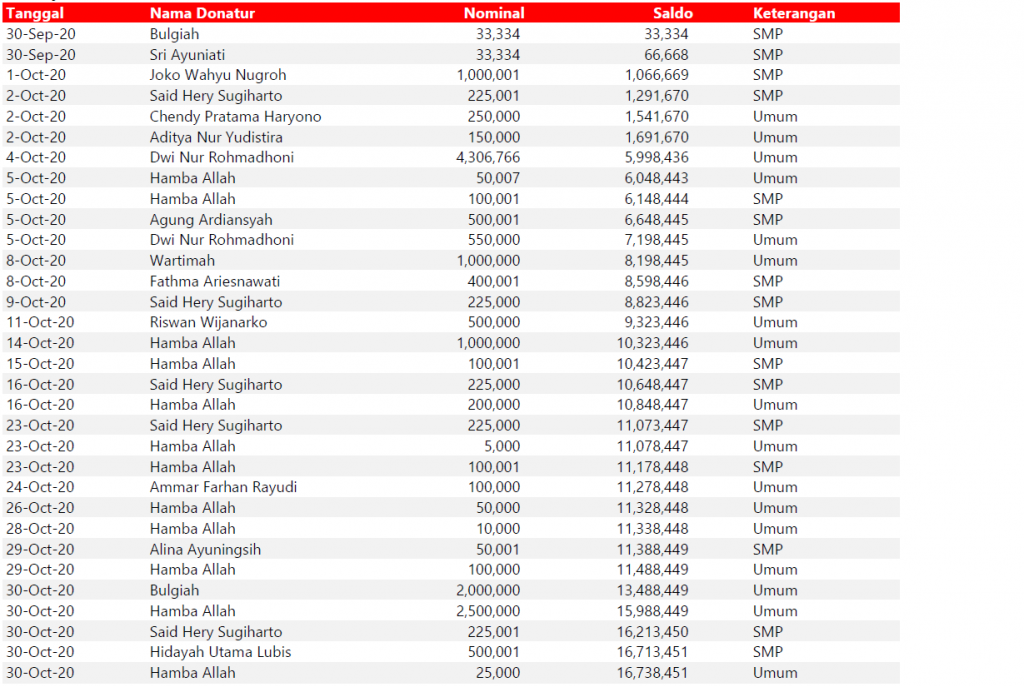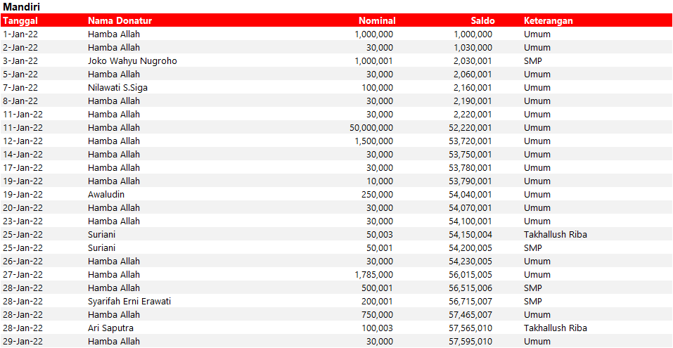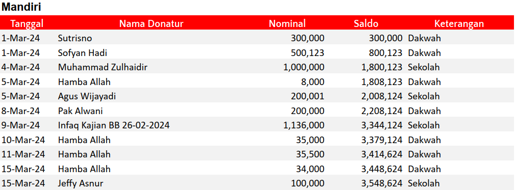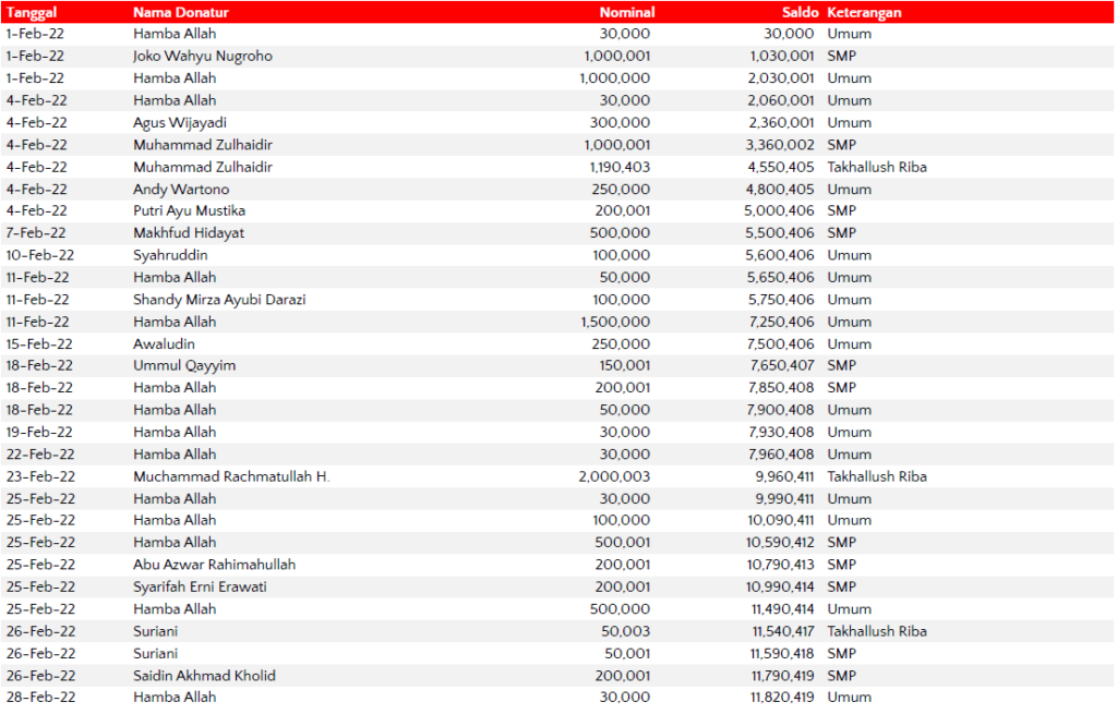 Semua dana yang masuk nantinya akan dibuatkan laporan yang akuntabel dan transparan secara berkala. Sehingga dapat dipertanggungjawabkan dihadapan ummat.