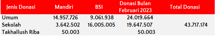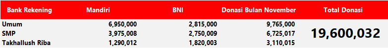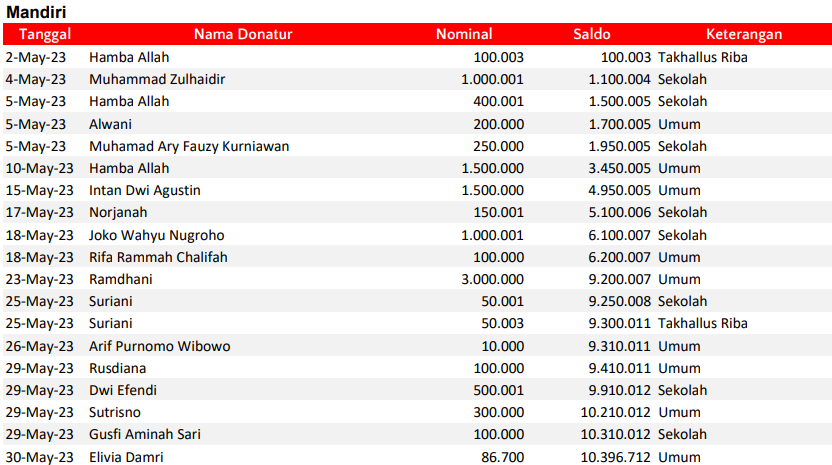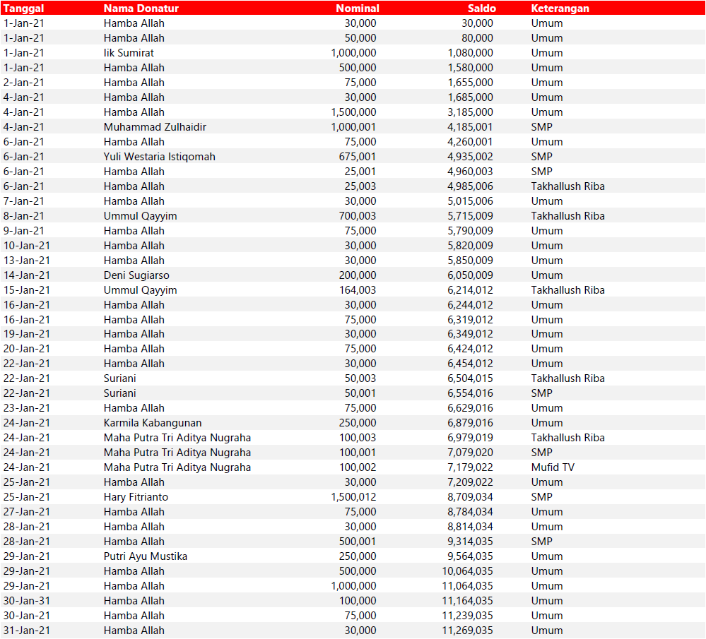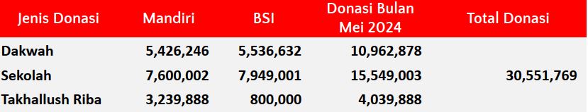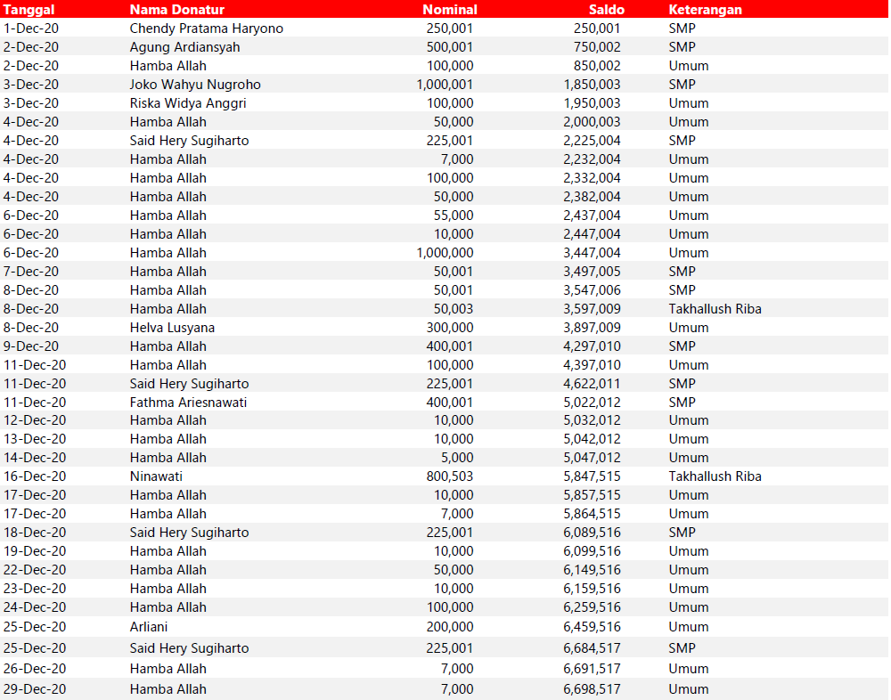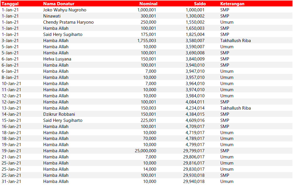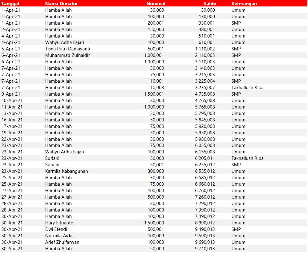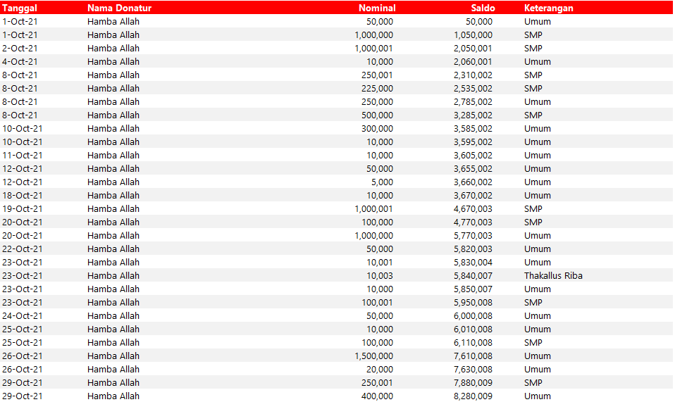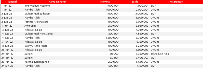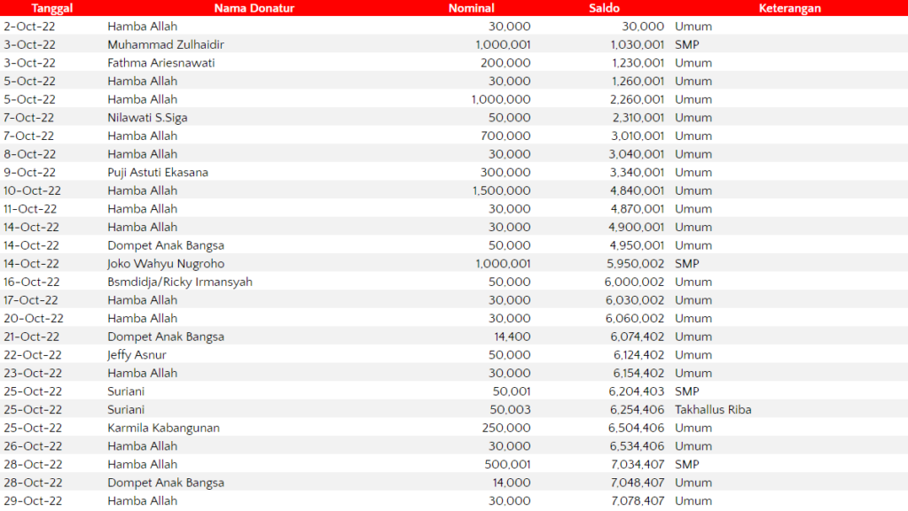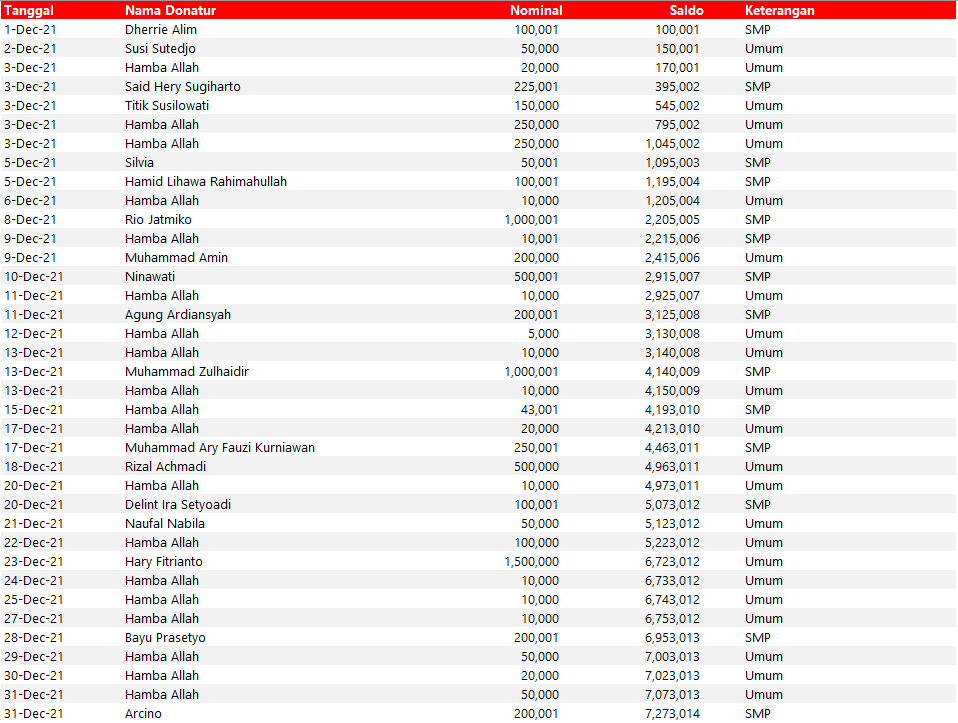 Semua dana yang masuk nantinya akan dibuatkan laporan yang akuntabel dan transparan secara berkala. Sehingga dapat dipertanggungjawabkan dihadapan ummat.