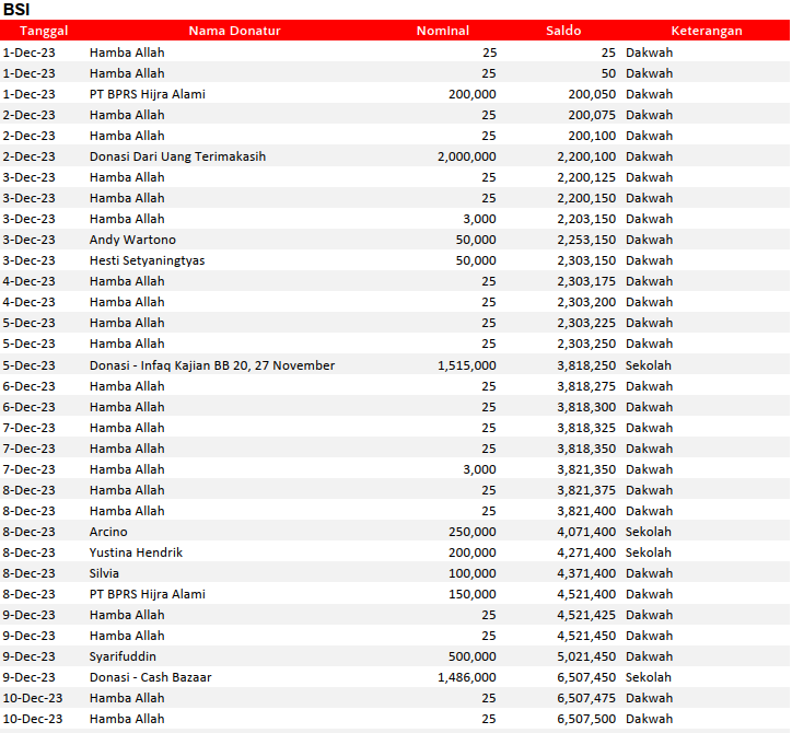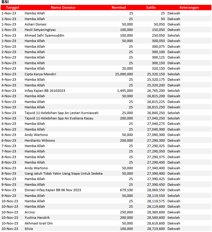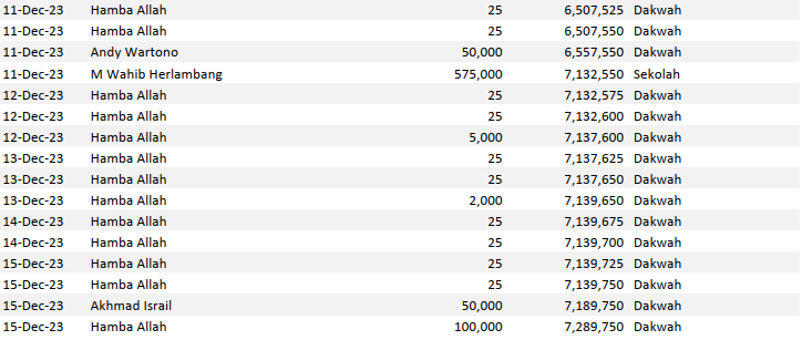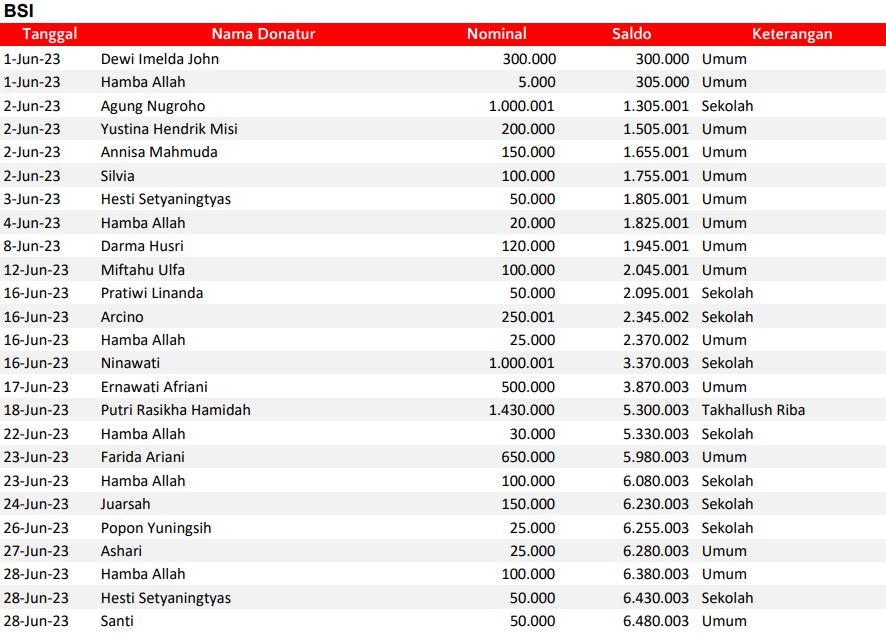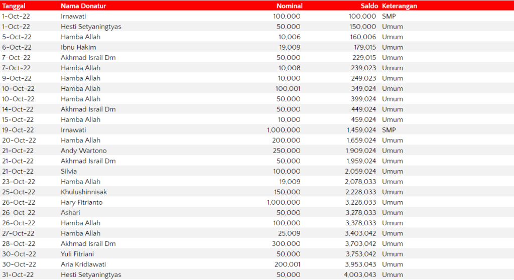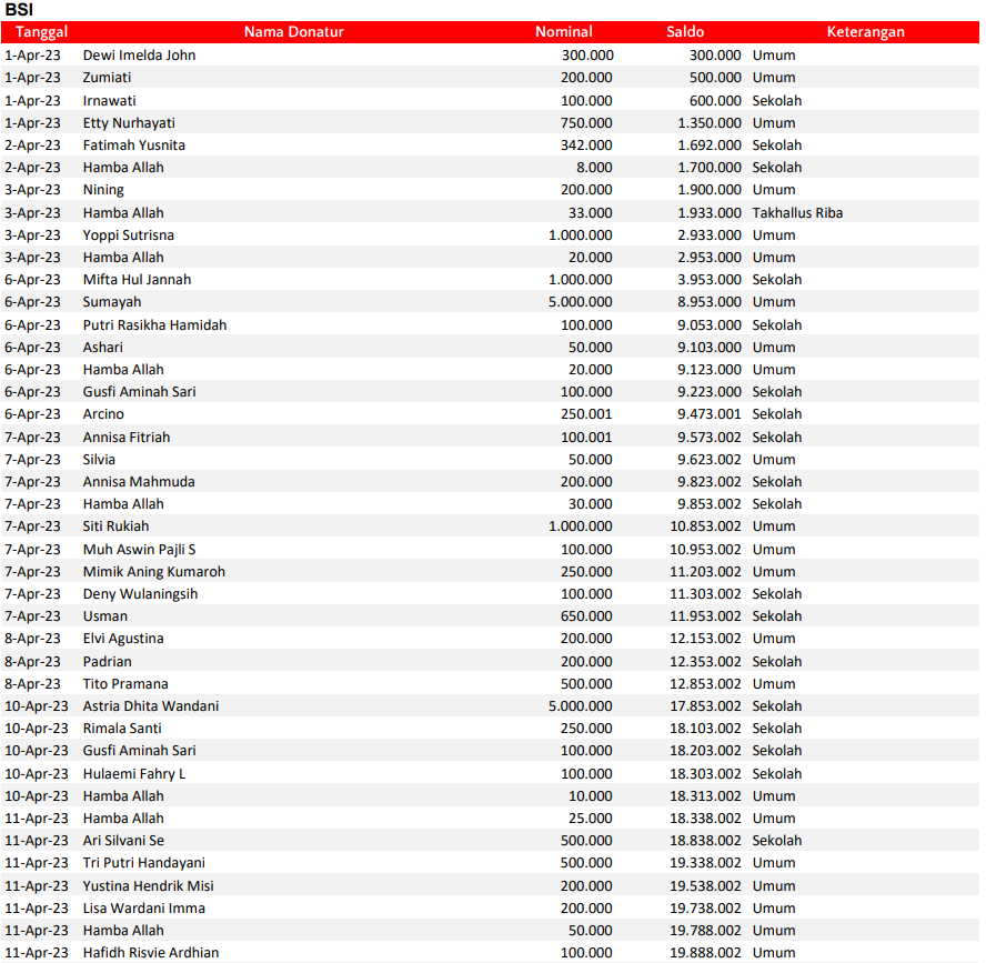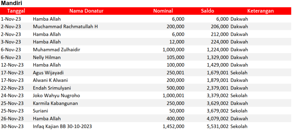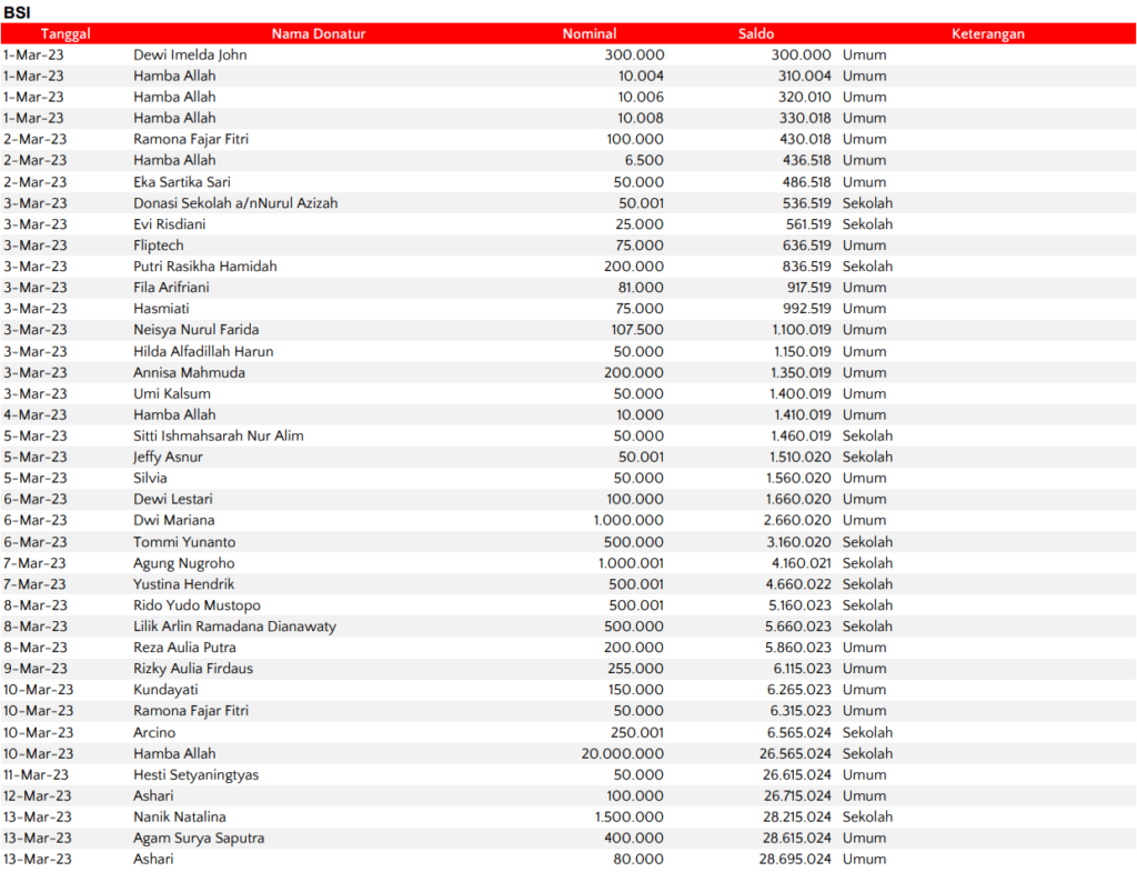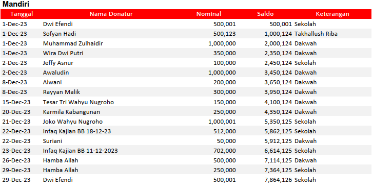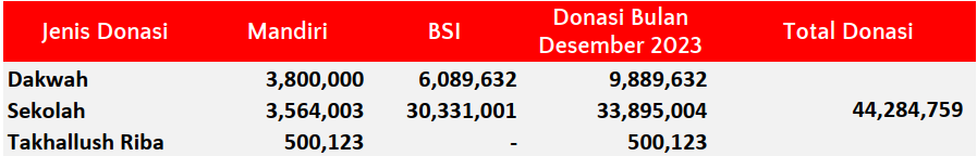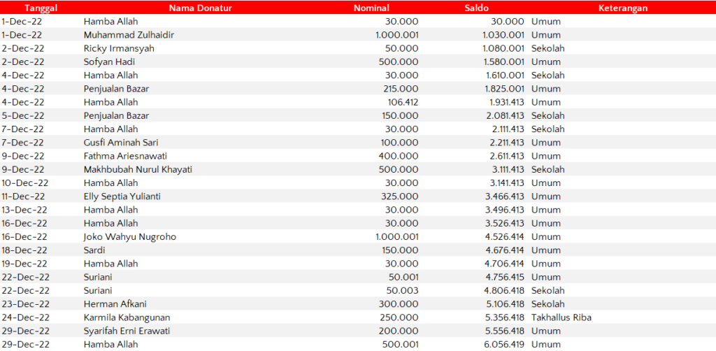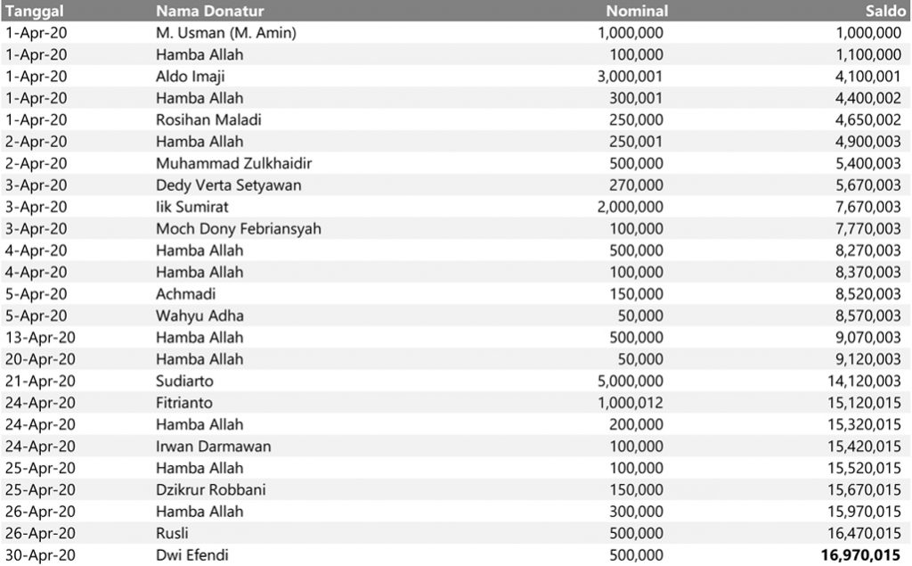 Semua dana yang masuk nantinya akan dibuatkan laporan yang akuntabel dan transparan secara berkala. Sehingga dapat dipertanggungjawabkan dihadapan ummat.