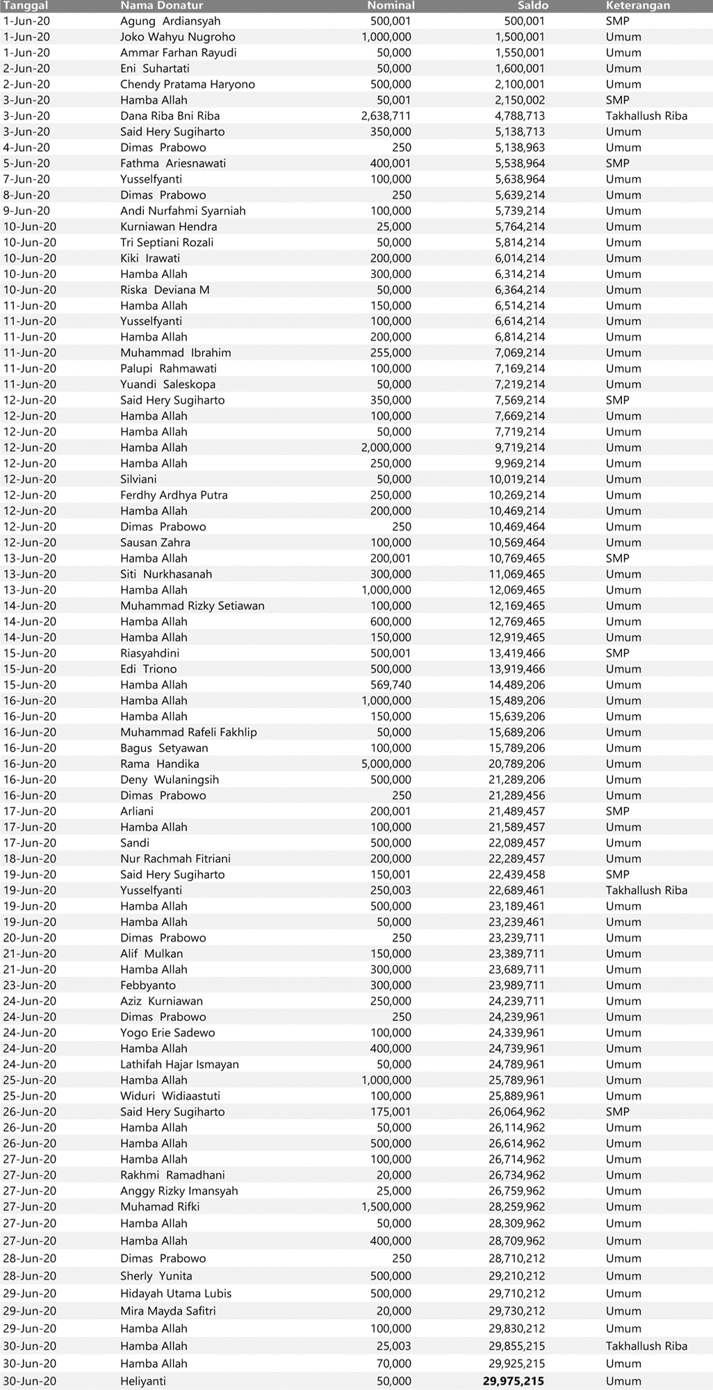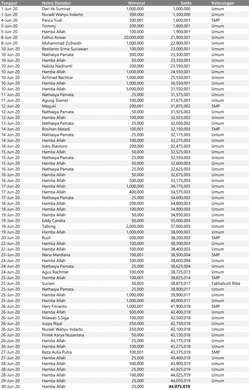 Rekapitulasi Juni 2020