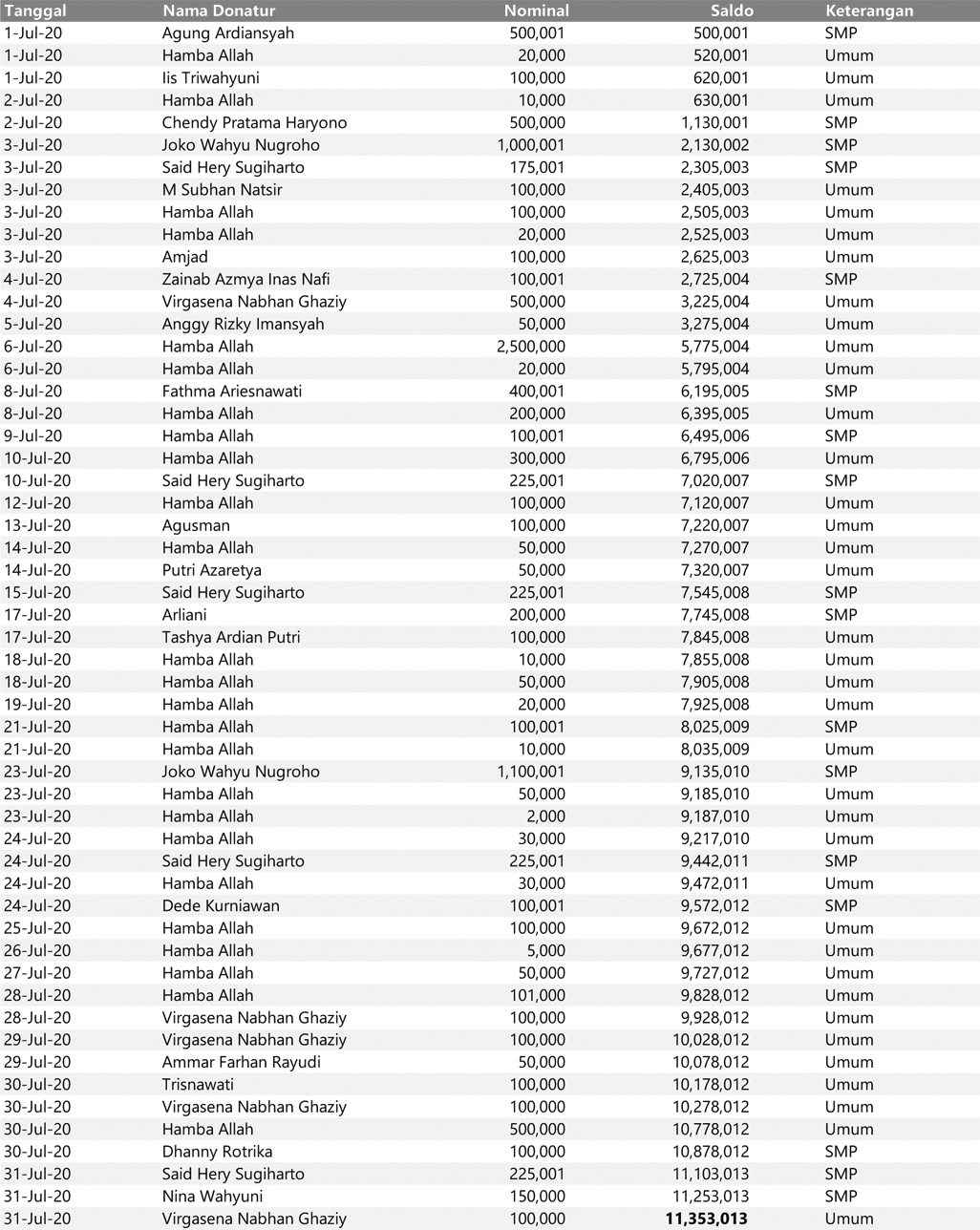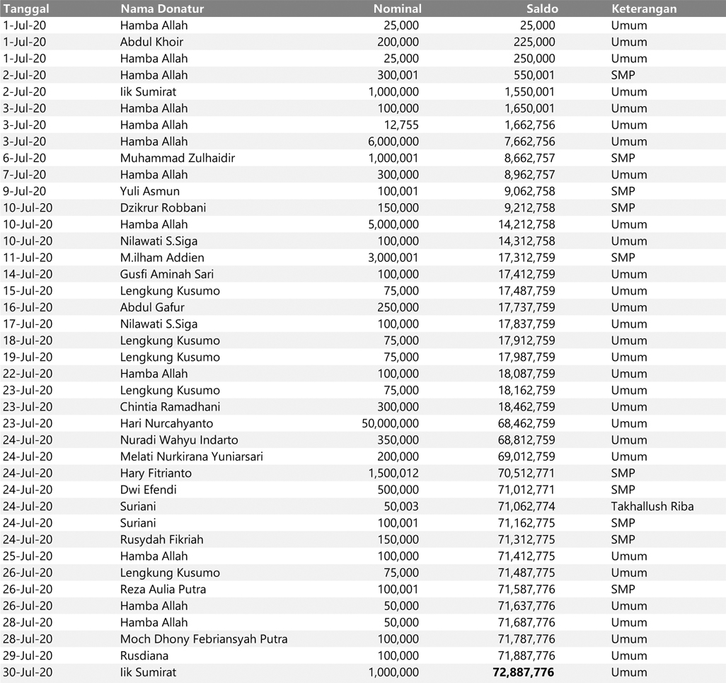 Rekapitulasi Juli 2020