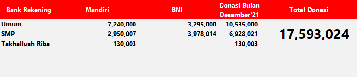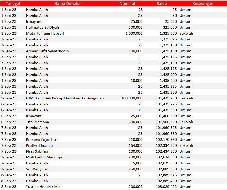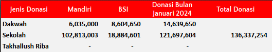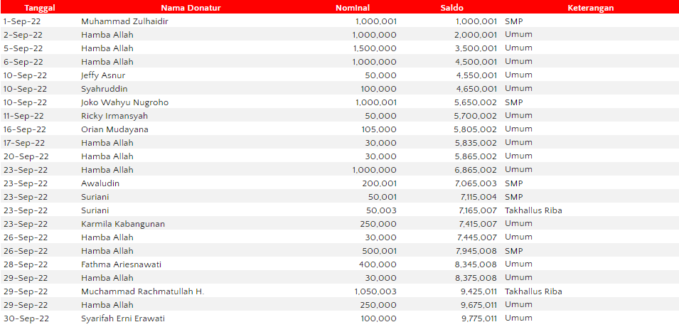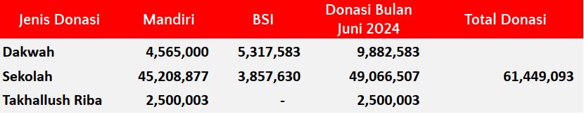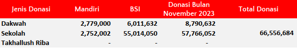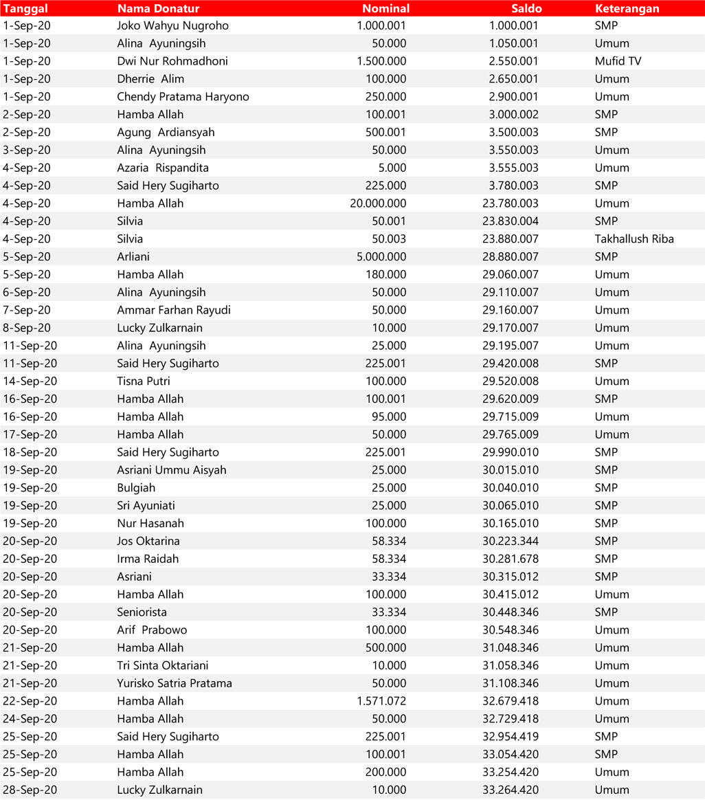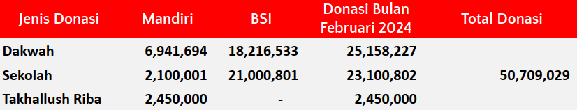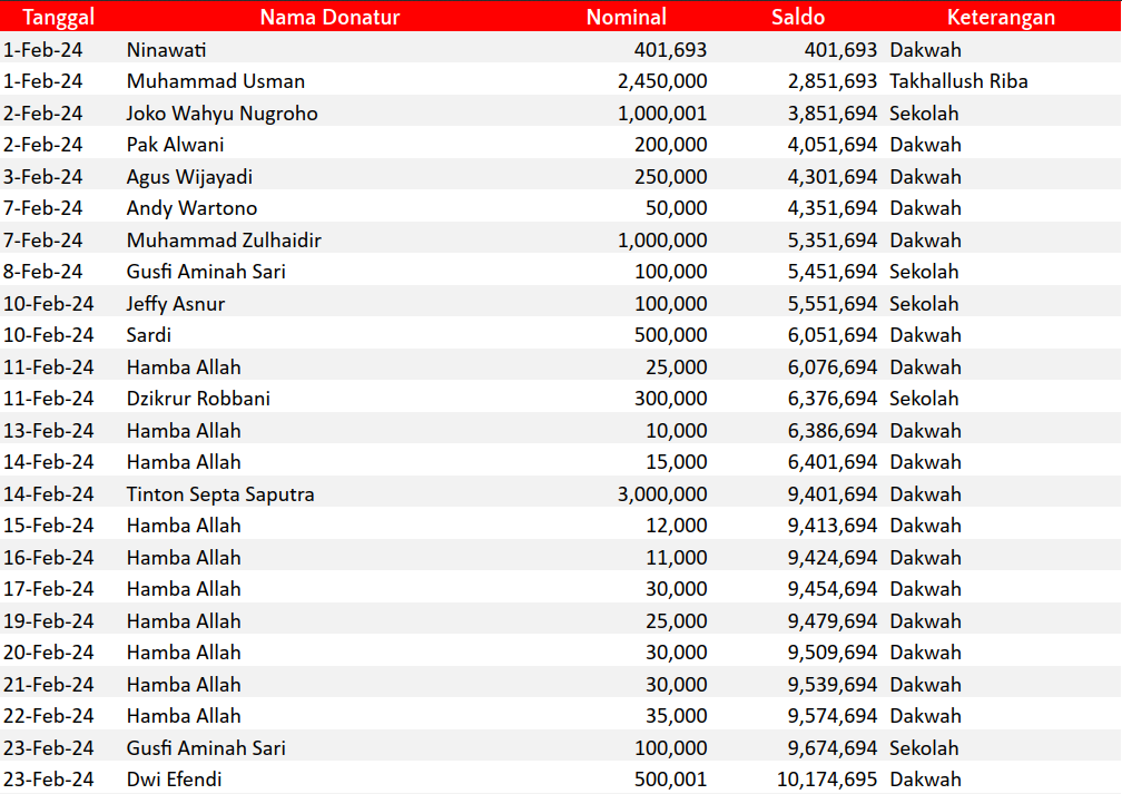 Donasi murni untuk pembangunan sekolah, fasilitas dakwah dan operasional Mufid (jika dibutuhkan)