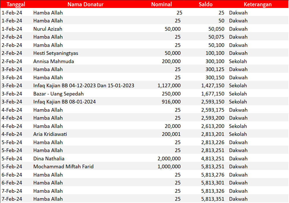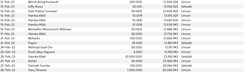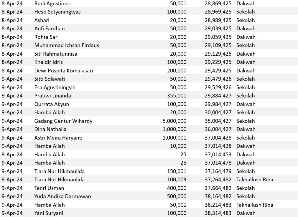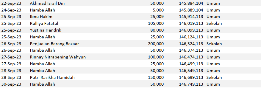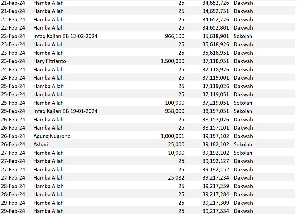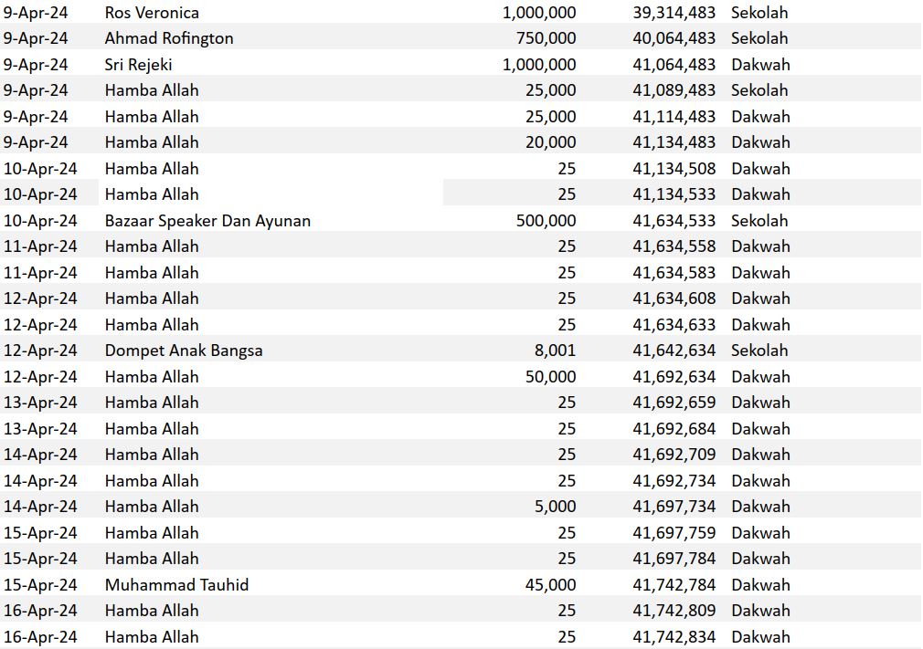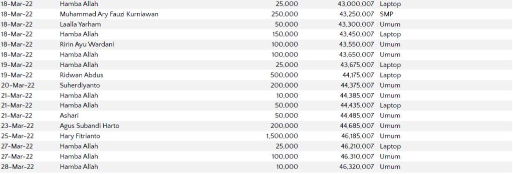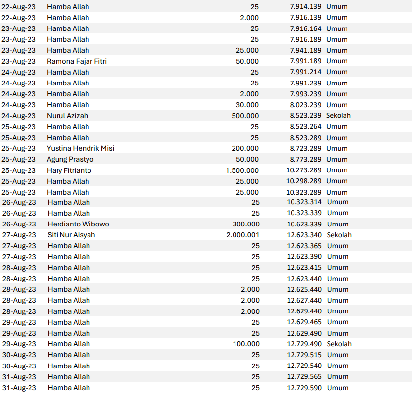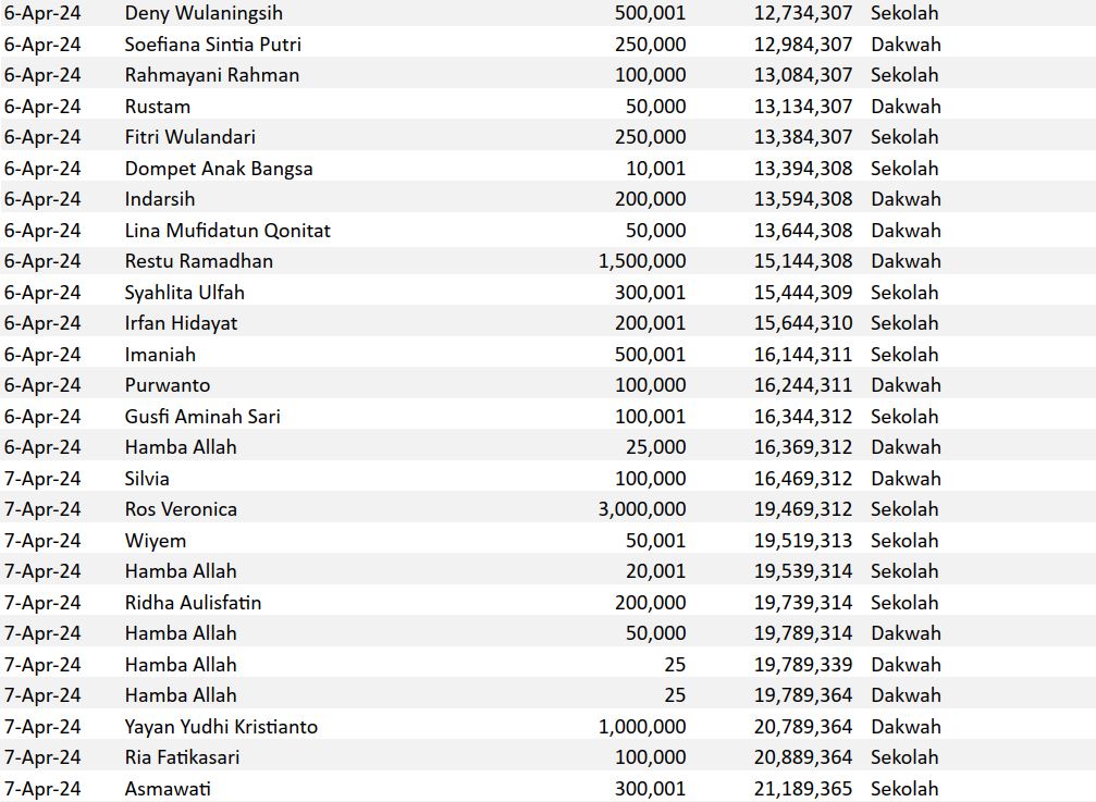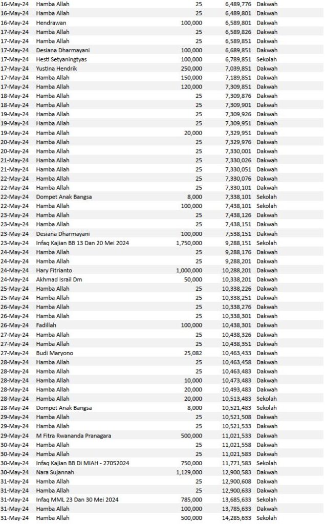 Semoga harta yang Bapak/Ibu keluarkan menjadi amal jariyah yang terus mengalir pahalanya dan menjadi pemberat timbangan amal kebaikan di akhirat. Aamiin.
