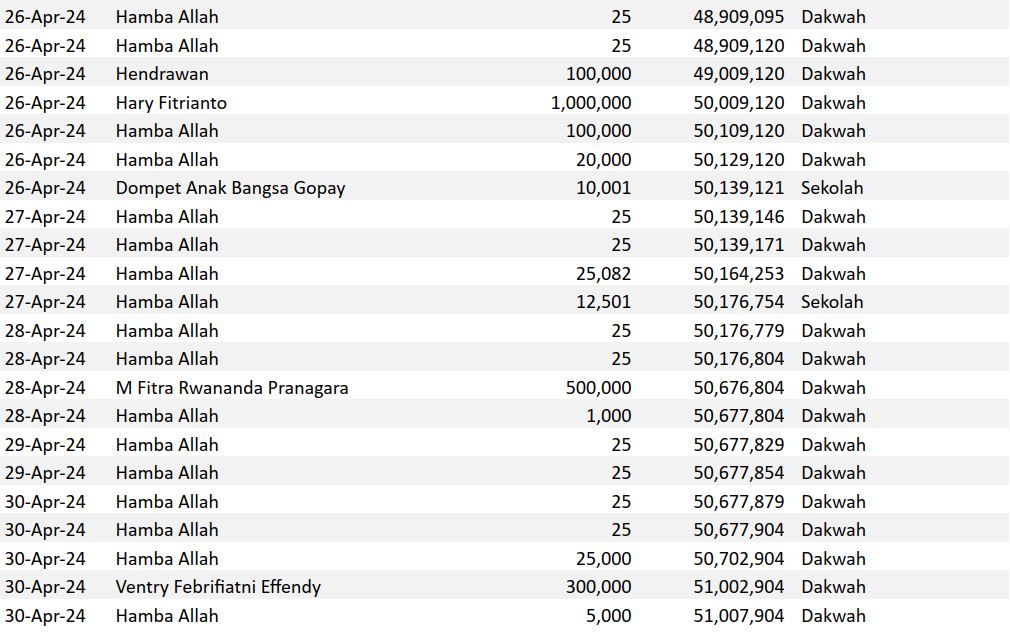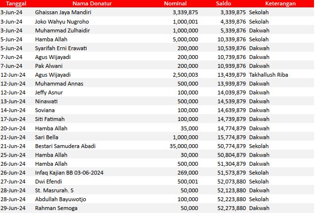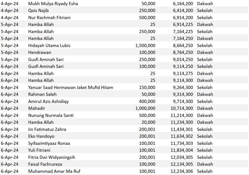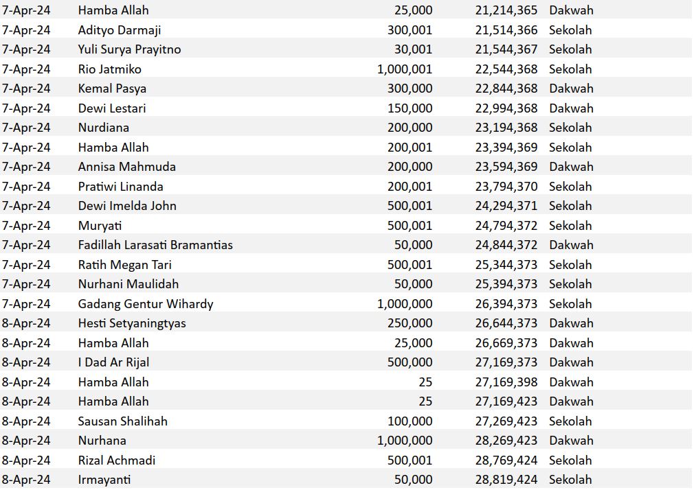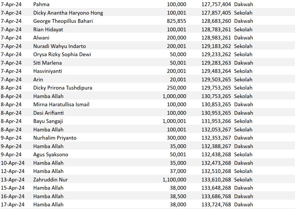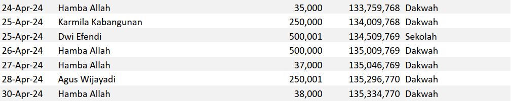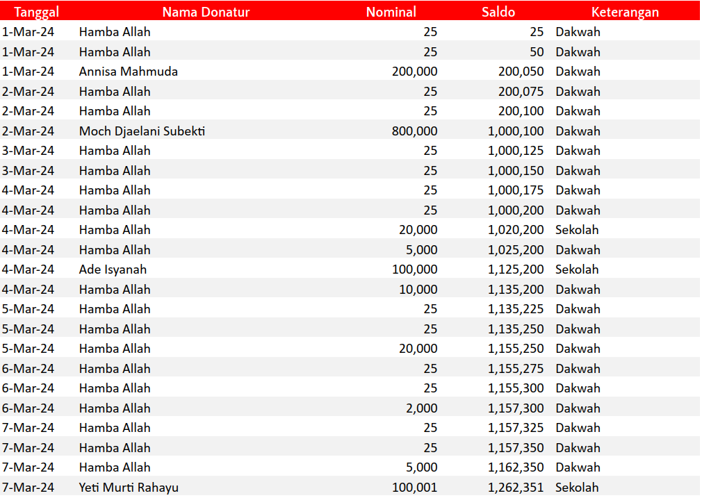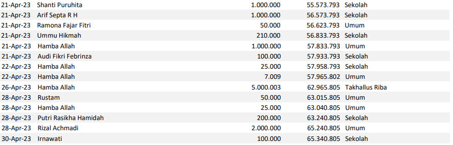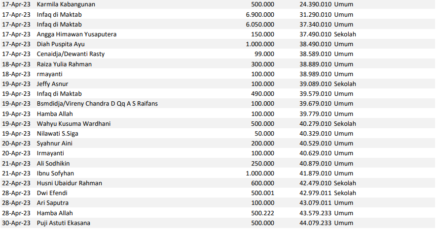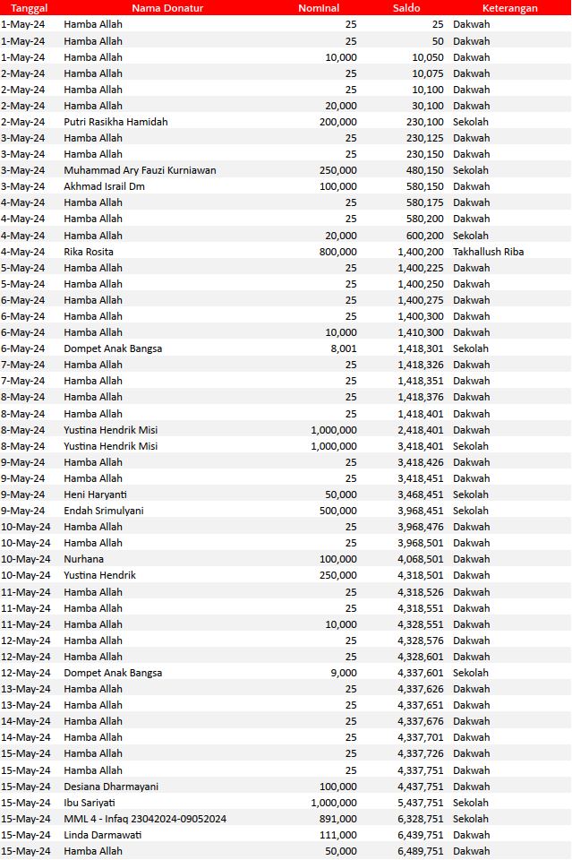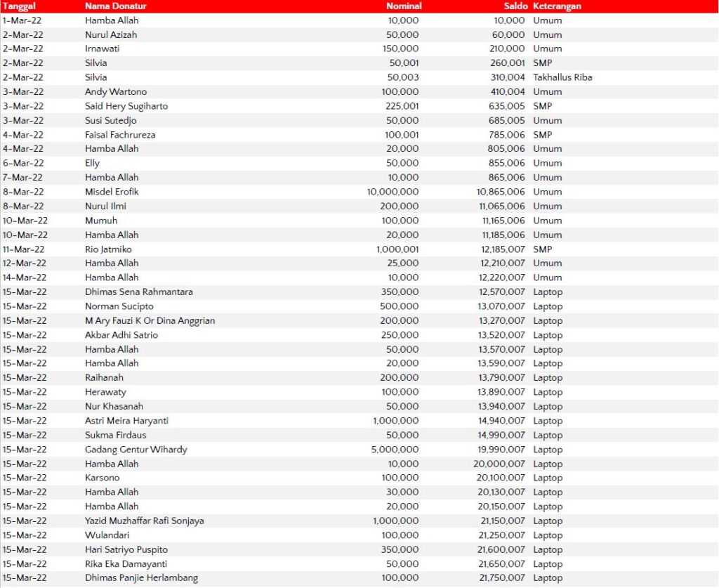 Semoga harta yang Bapak/Ibu keluarkan menjadi amal jariyah yang terus mengalir pahalanya dan menjadi pemberat timbangan amal kebaikan di akhirat. Aamiin.
