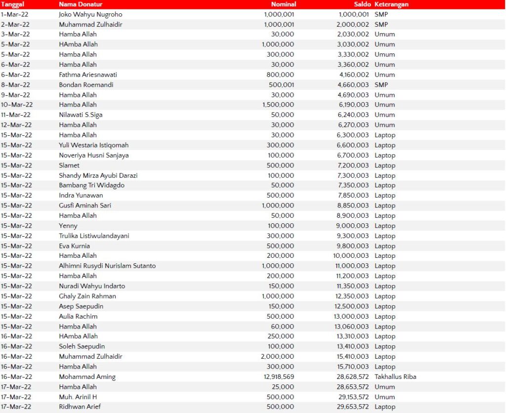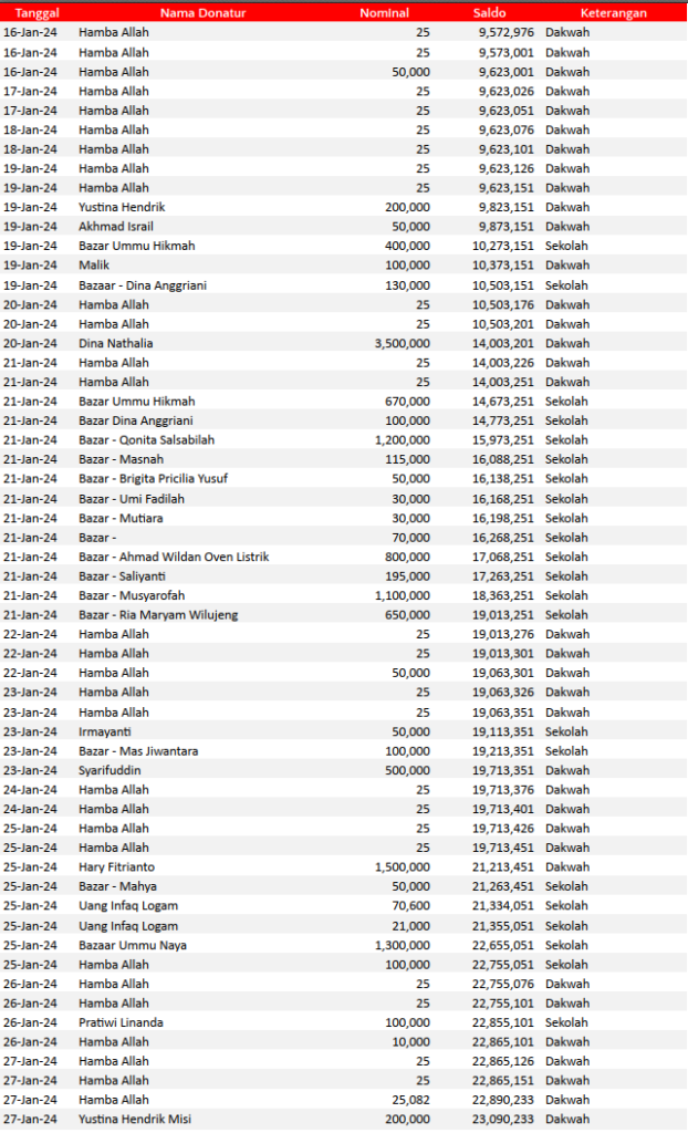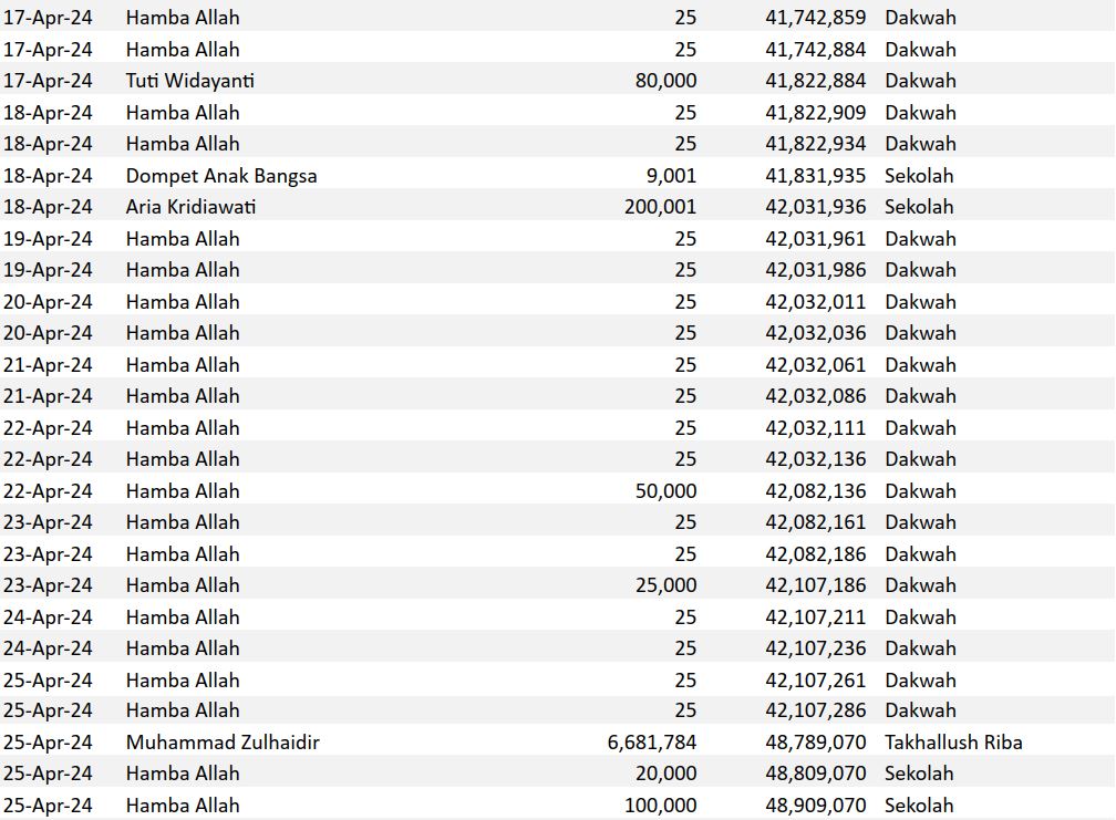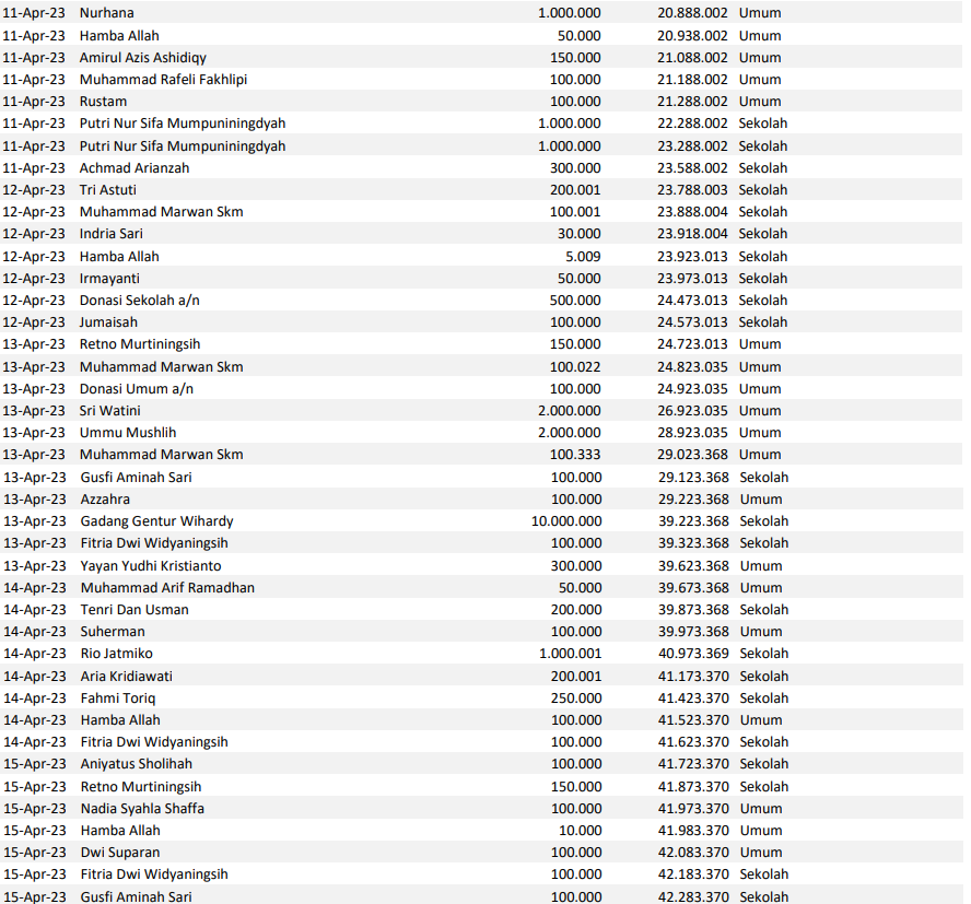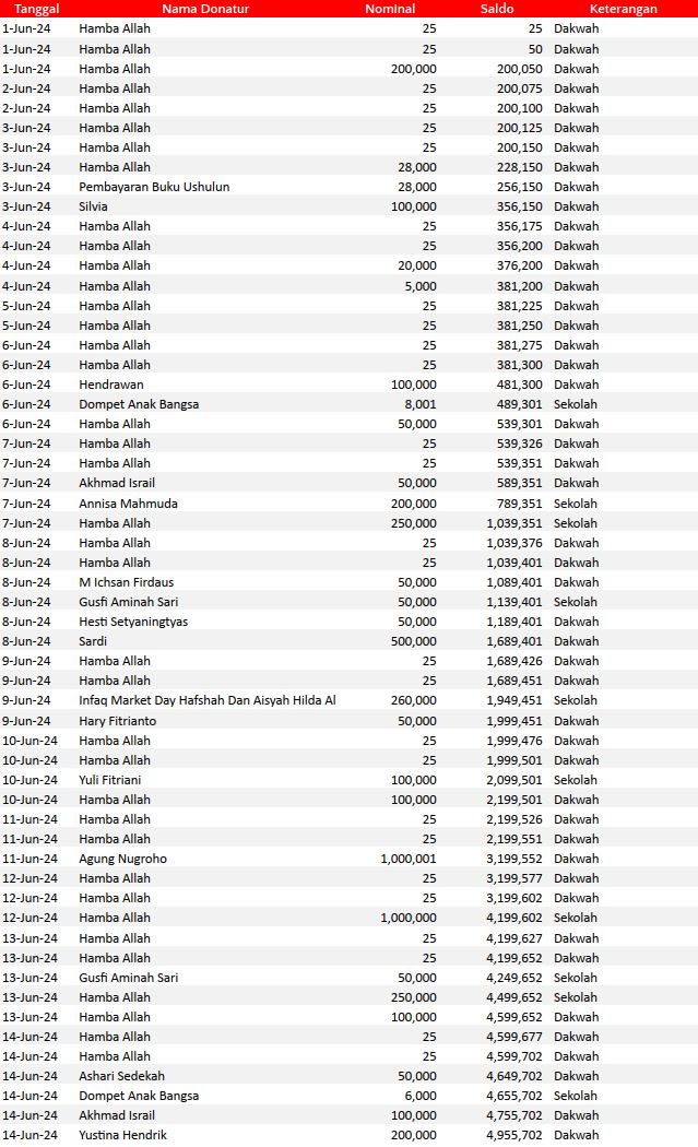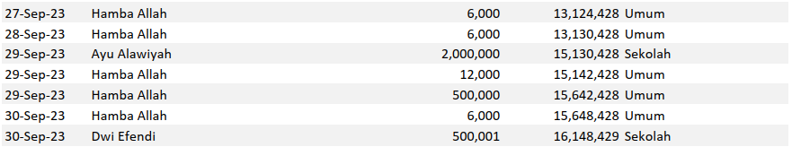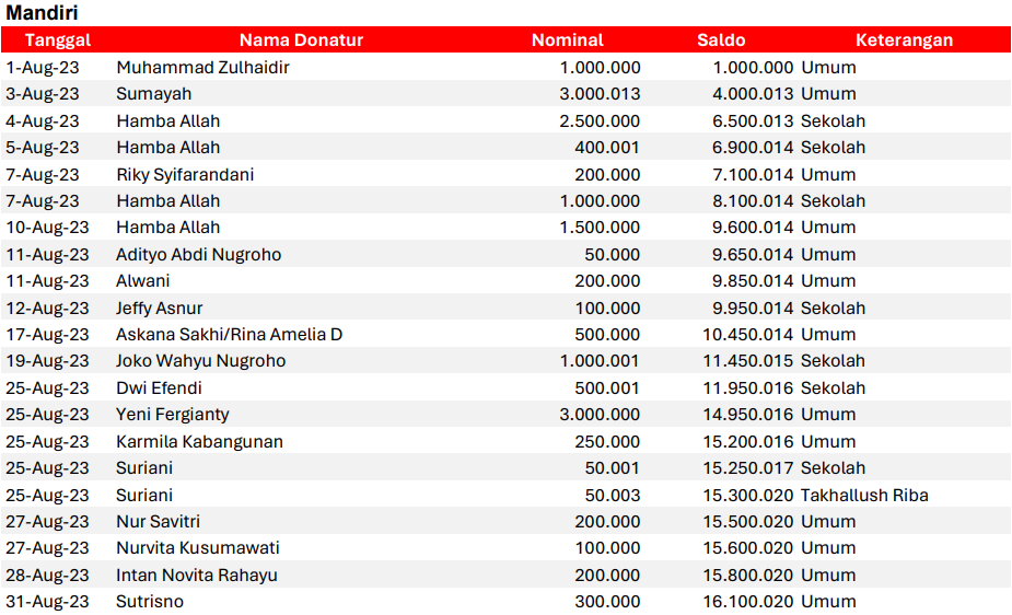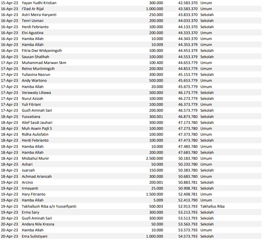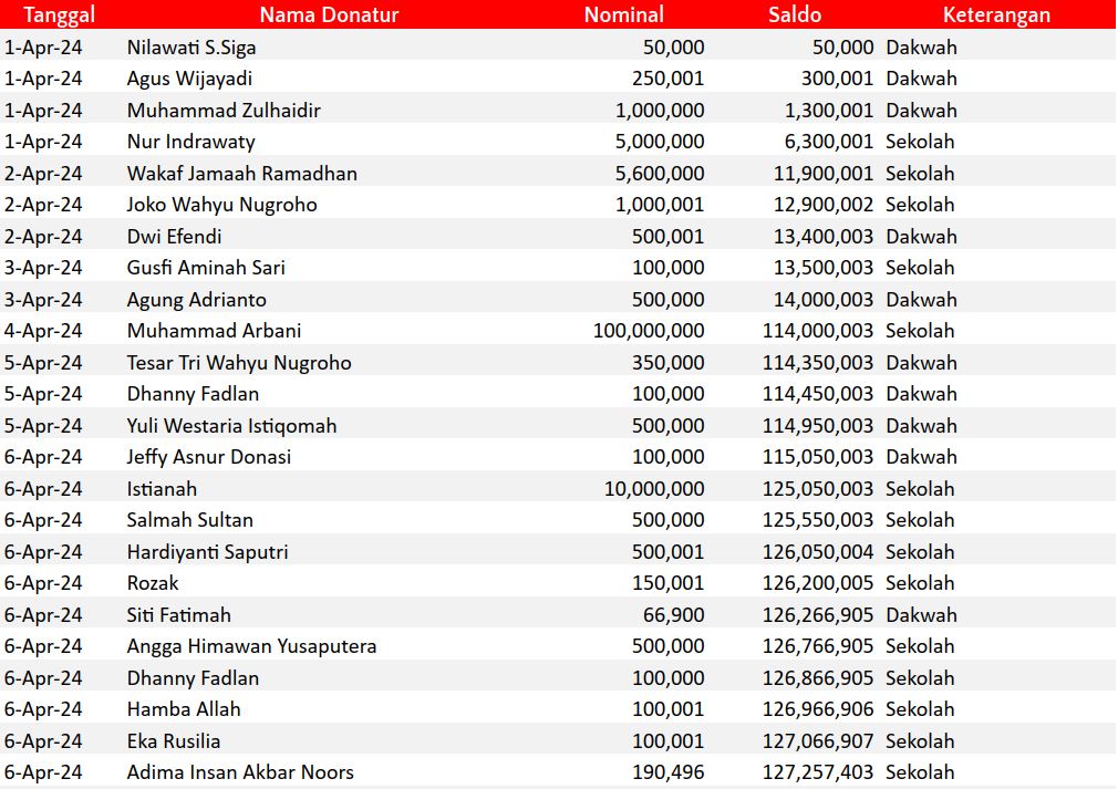 Semoga harta yang Bapak/Ibu keluarkan menjadi amal jariyah yang terus mengalir pahalanya dan menjadi pemberat timbangan amal kebaikan di akhirat. Aamiin.