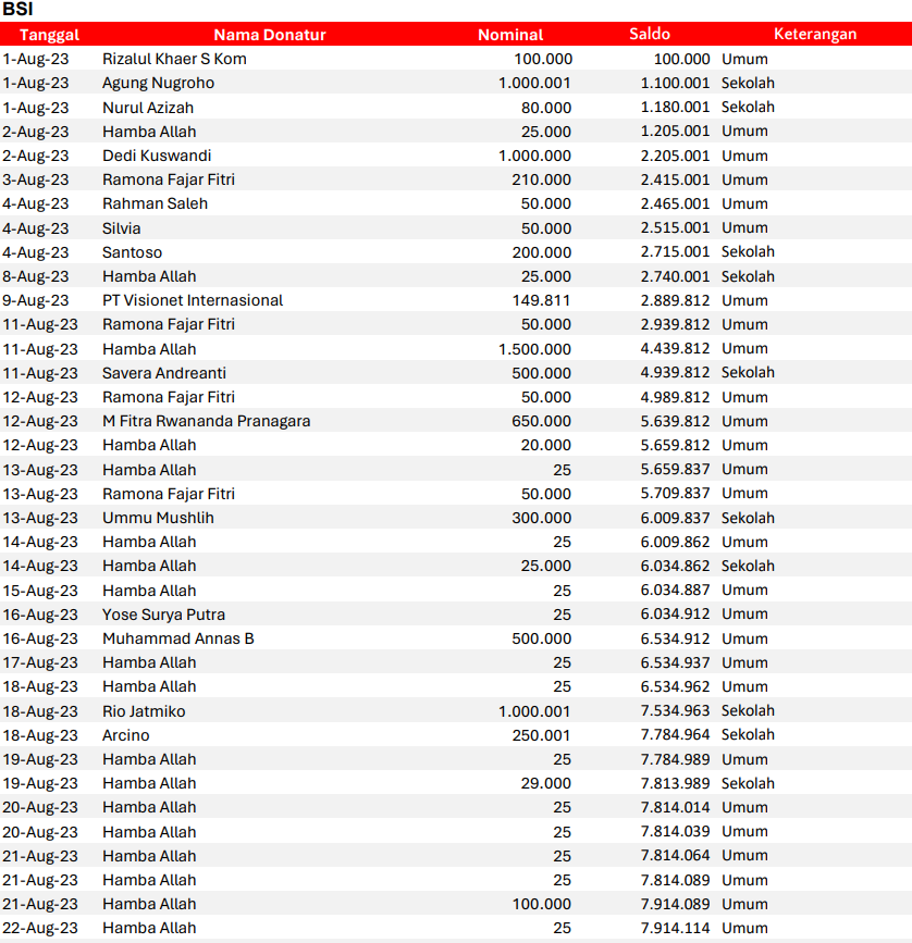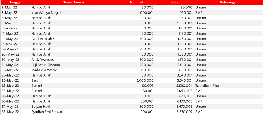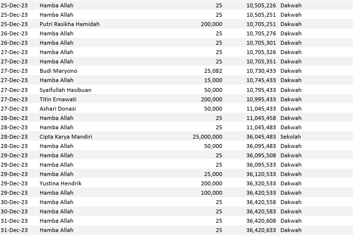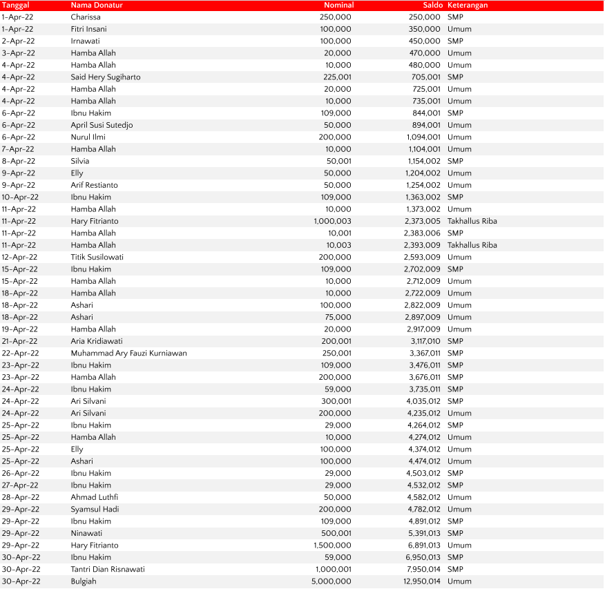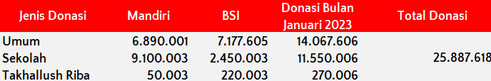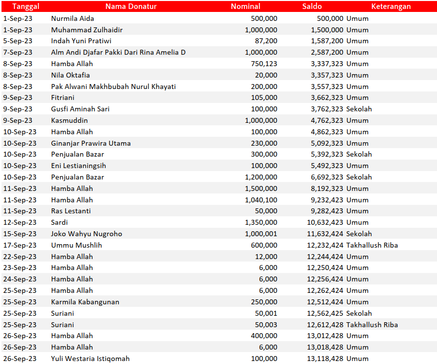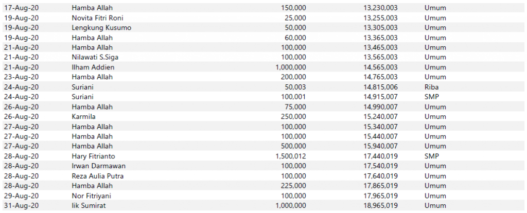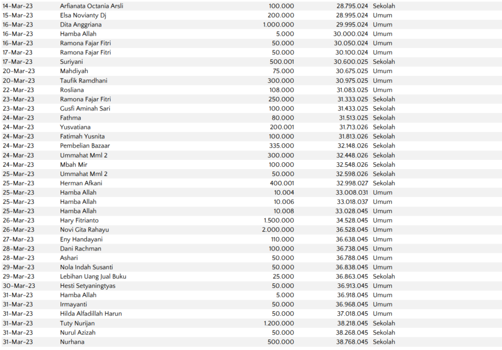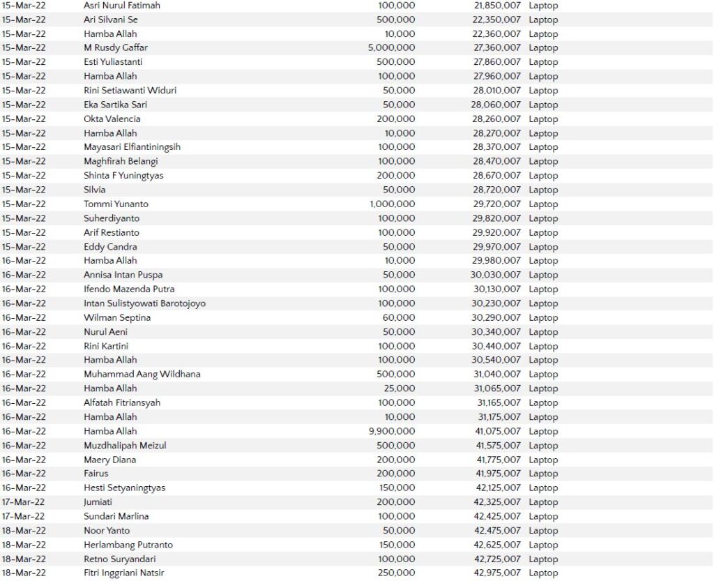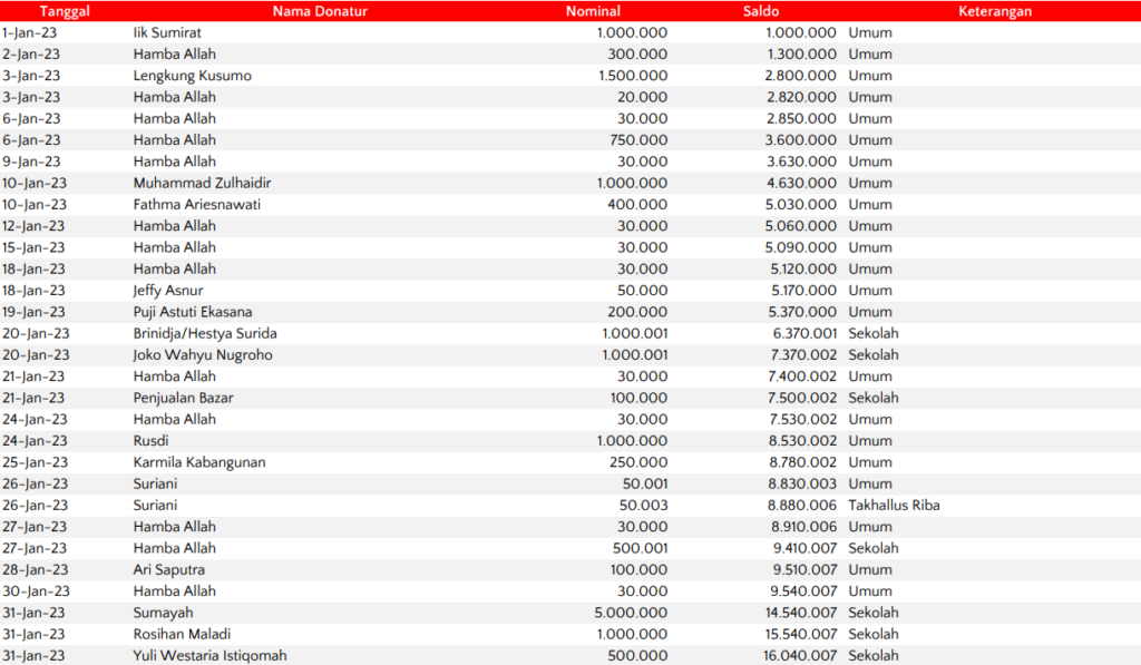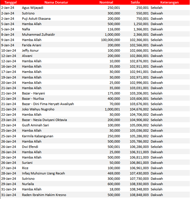 Semoga harta yang Bapak/Ibu keluarkan menjadi amal jariyah yang terus mengalir pahalanya dan menjadi pemberat timbangan amal kebaikan di akhirat. Aamiin.