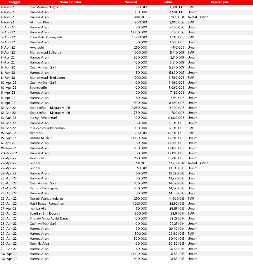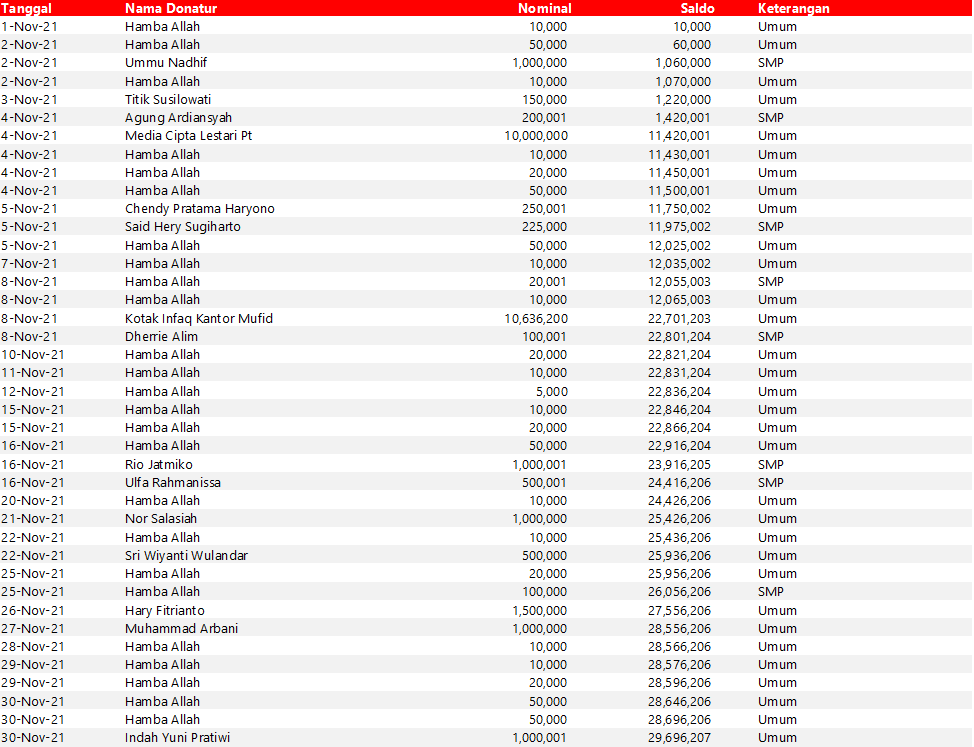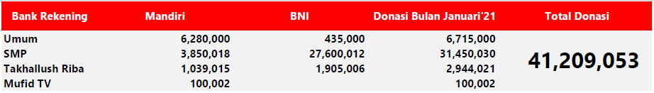 Demikian, demi kenyamanan seluruh donatur yang membantu kegiatan dakwah Yayasan Mufid.