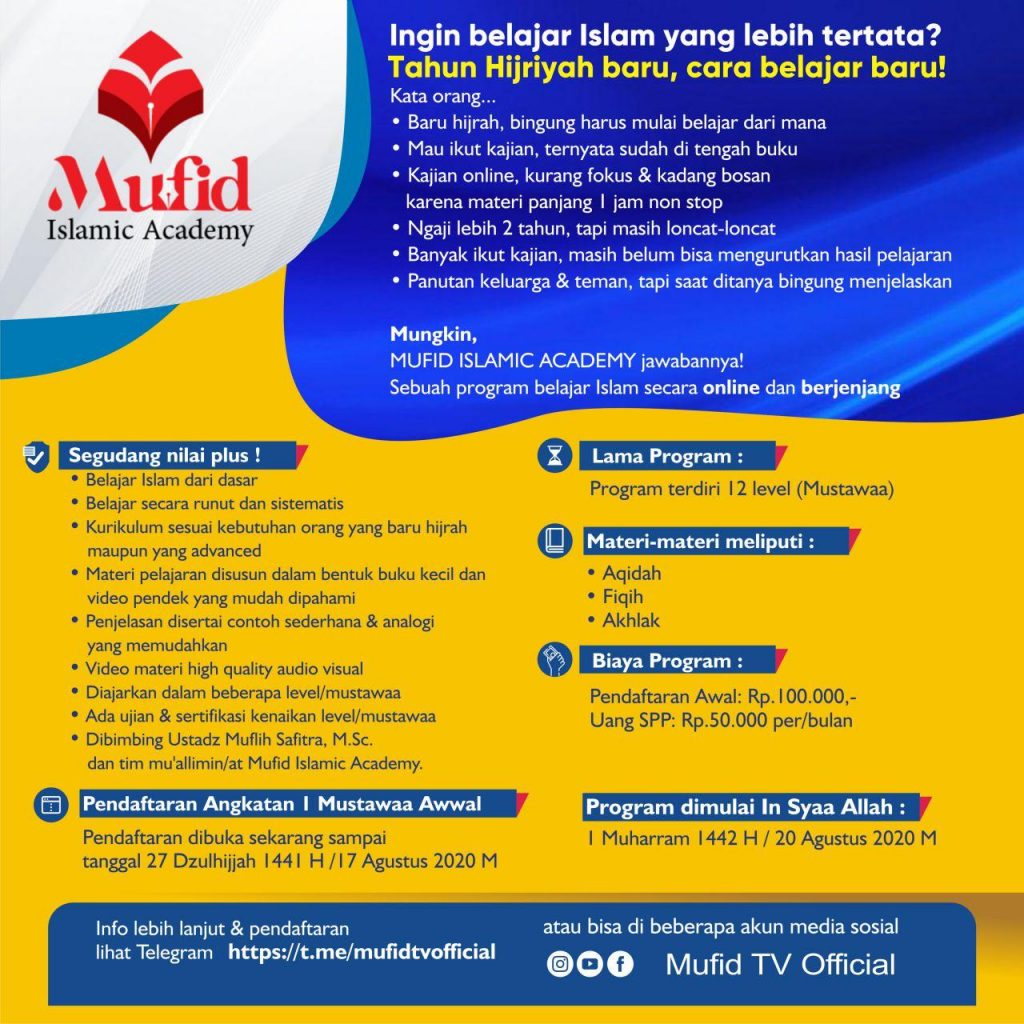 โถ๏ธ Program dimulai in syaa Allah: tanggal 1 Muharram 1442 H/ 20 Agustus 2020 M