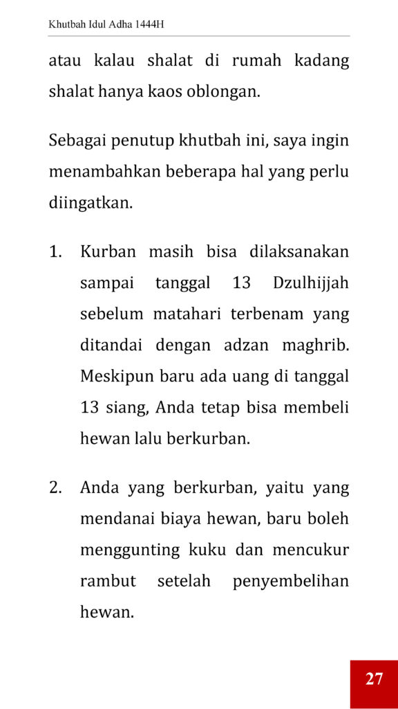 Berita Yayasan Khutbah Idul Adha June 26, 2023 by admin Ustadz Muflih Safitra, M.Sc. Download PDF Download WORD Download PDF Download WORD Leave a comment Cancel replyYour email address will not be published. Required fields are marked *Comment * Name * Email * Website Save my name, email, and website in this browser for the next time I comment. Δ